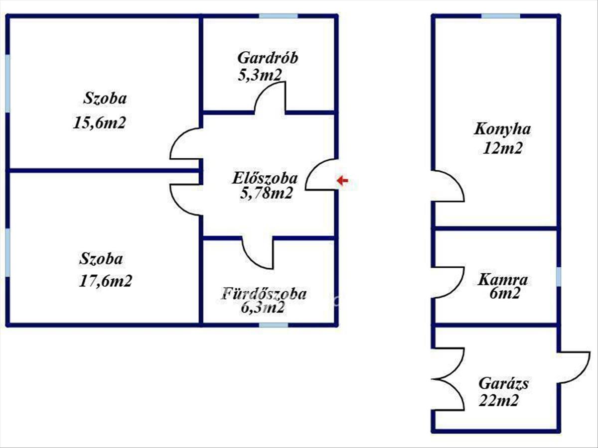 A főépület 2 szoba, gardrób, előszoba és egy fürdőszobából ál. a szintén felújított melléképületben található egy konyha és egy kamra. a két épület egy tetővel van összekötve, igy gyakorlatilag a két épület között van egy fedett terasz.