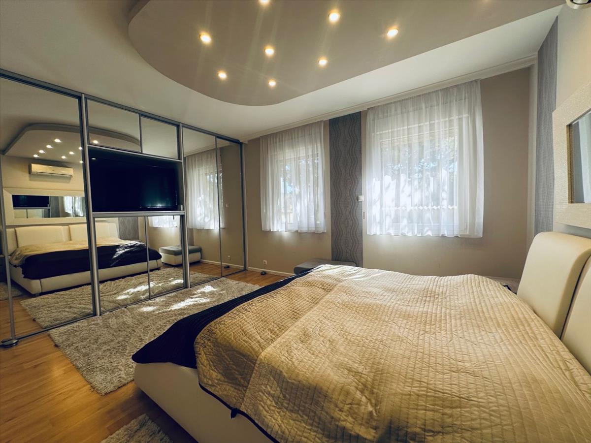 Az emeleten társalgó, erkély, 4 külön nyíló szoba, kettő szobához külön fürdőszoba és gardróbszoba is tartozik.