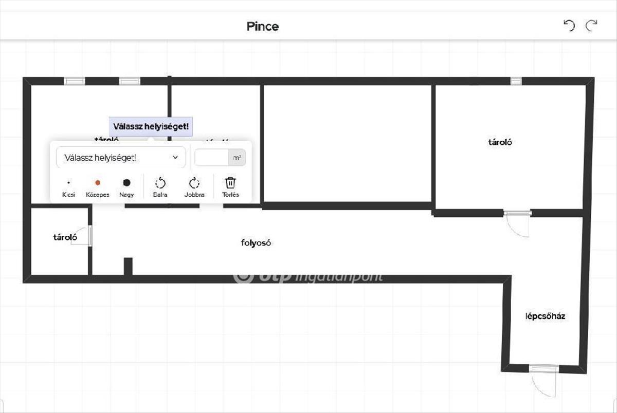? Pinceszint (100 m? ): Több helyiségből áll, ide tartozik egy 12 m? -Es hűtőkamra, kisebb-nagyobb raktárak és egy 300 kg teherbírású teherlift, amely összeköti a pincét a földszinttel.