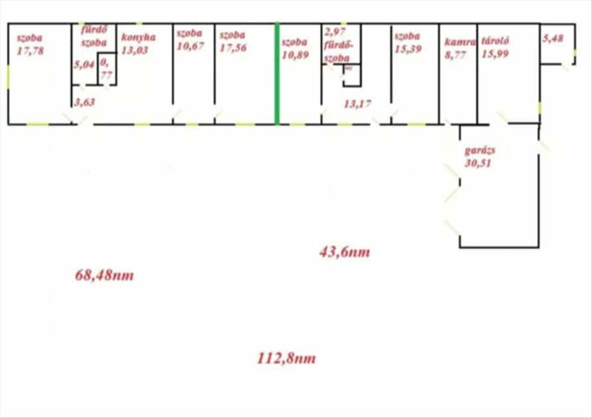 A hátsó lakrész ideális lehet albérleteztetésre, generációk együttélésére, bármilyen tevékenységre, esetleg irodának. Ez a rész felújítandó, igény szerint, de lakható is jelenleg tárolóként funkcionál. a lakrész elosztása:
