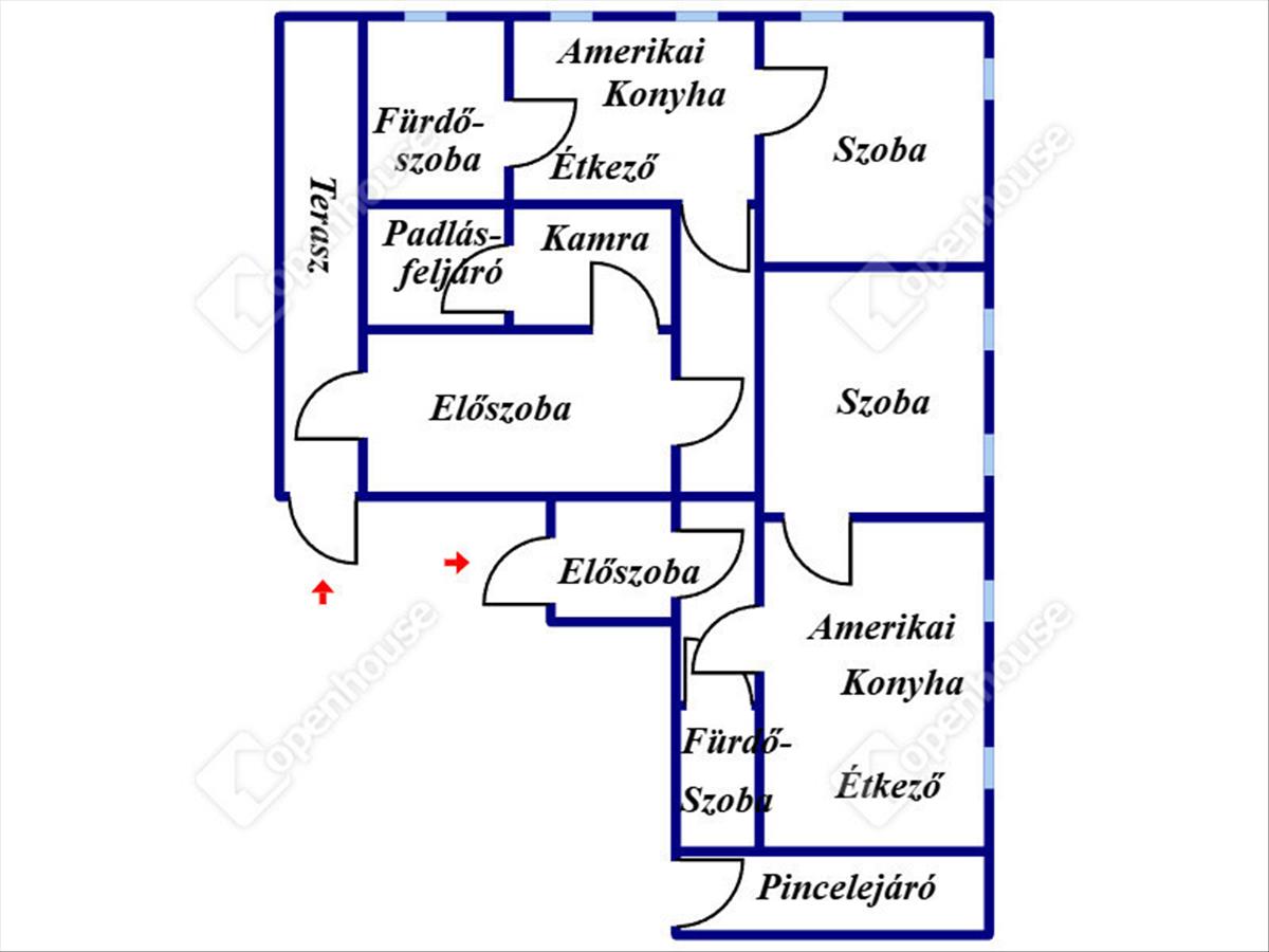 - a házban két szoba, két amerikai konyhás nappali, két fürdőszoba található.
