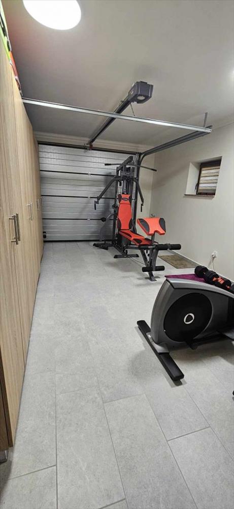 A telken található még egy 90 m2 es, 3 autónak helyt adó garázs, távvezérelhető, elektromos garázsajtóval, valamint egy konyha, zuhanyzó, wc is kialakításra került.
