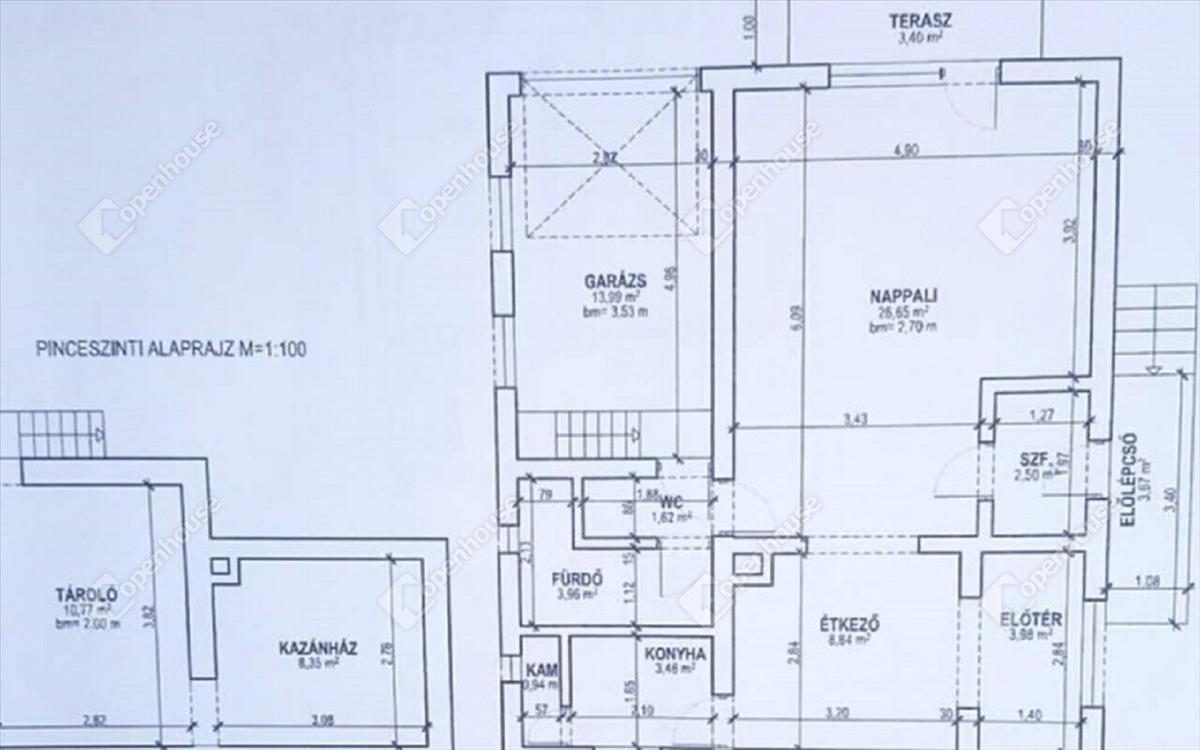 - a családi ház földszint részén, egy nappali, étkező, konyha, kamra, előtér, szélfogó, fürdőszoba, WC külön helységben található.