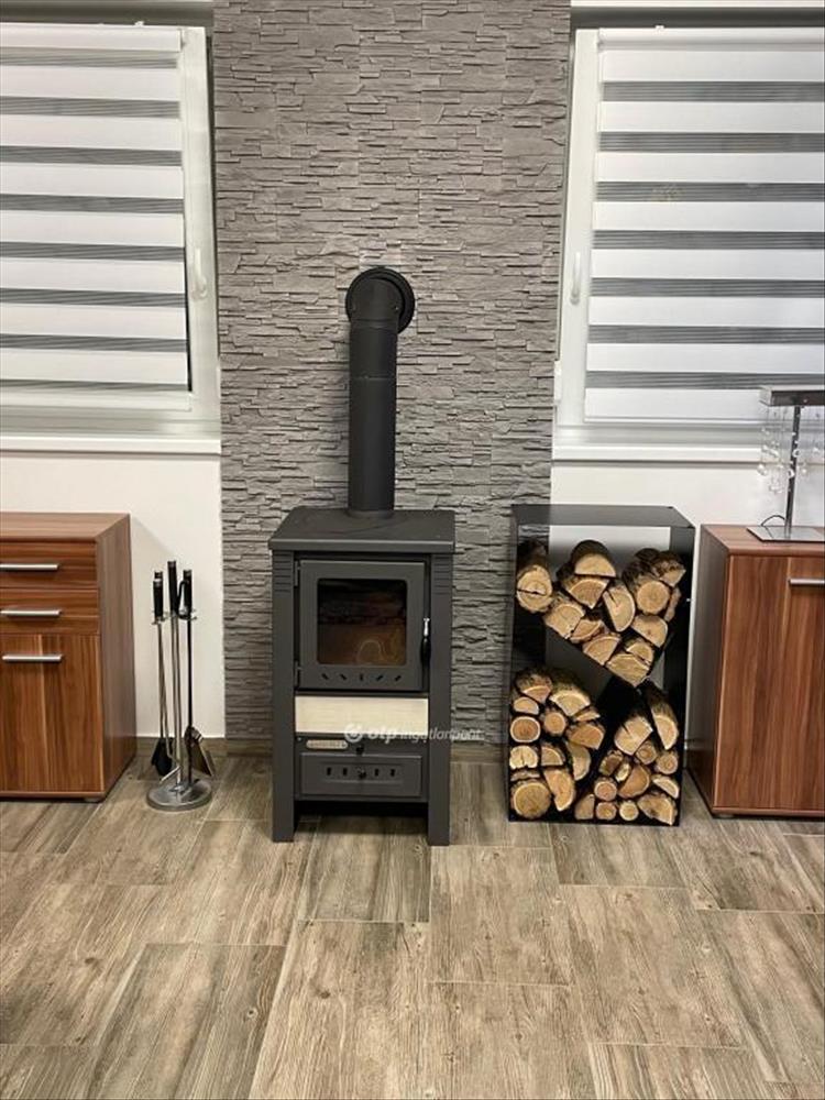 Korszerű fűtés-hűtés: infra padlófűtés, hűtő-fűtő klímák, nappaliban kandalló