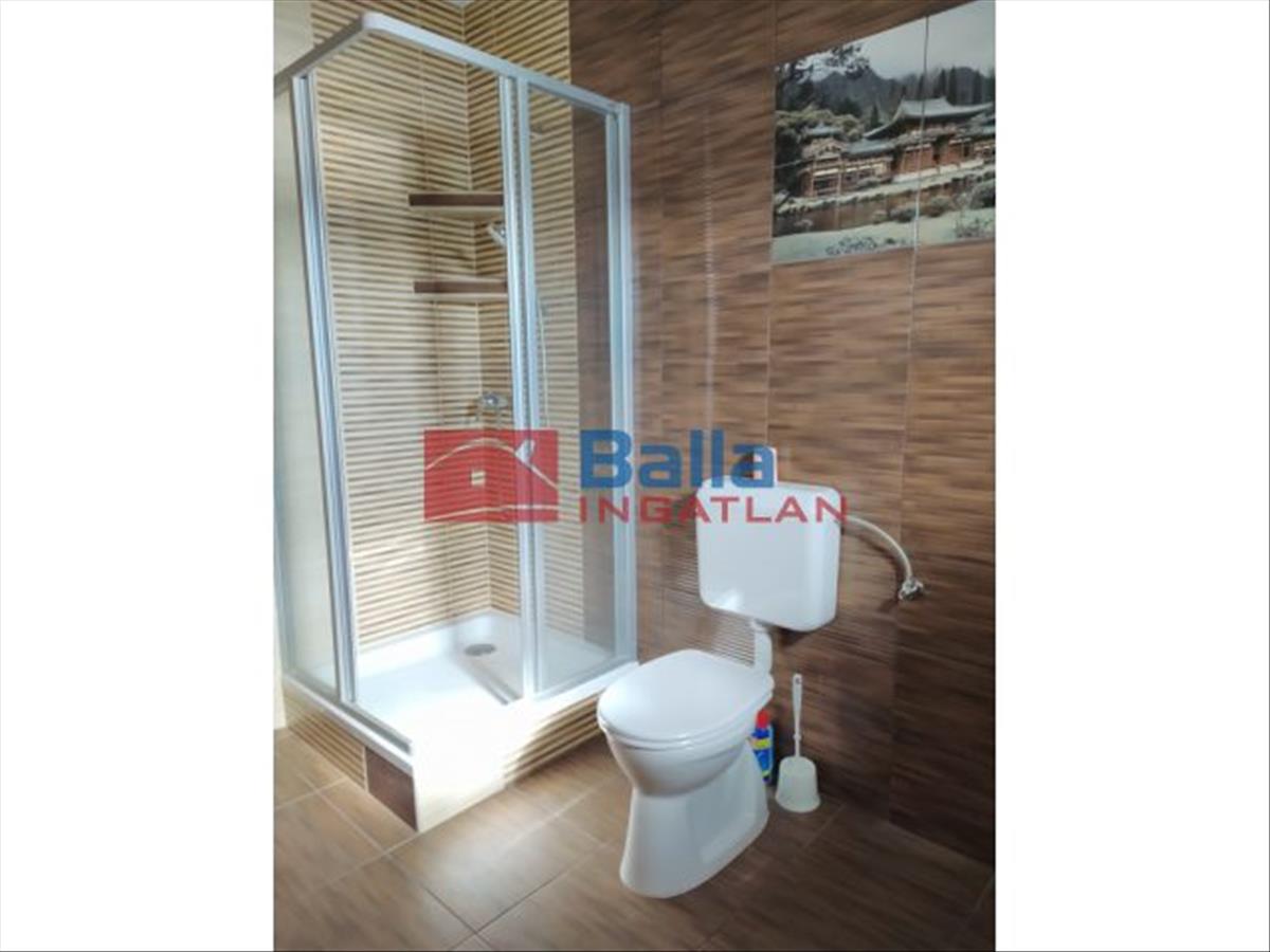 On the ground floor of the two-story apartment there is a bathroom with a shower, living room, dining room, kitchen, and upstairs there are two larger communal areas and three rooms with a bathroom with a bathtub. There is also a toilet in both bathrooms.