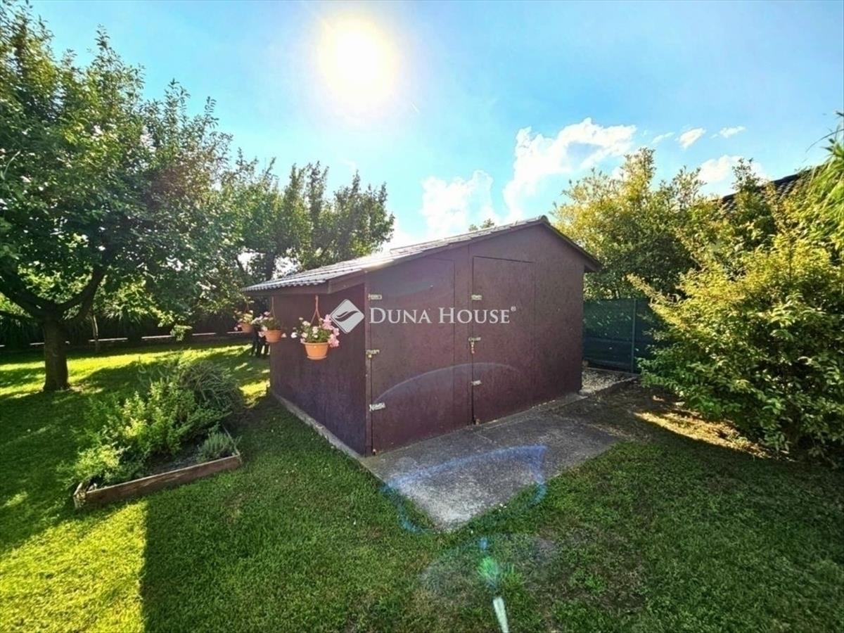 A kert gondozott, saját fúrt kúttal, kerti tárolóval, zuhannyal és egy hangulatos, 24 m²-es szaletlivel, ami tökéletes helyszín családi összejövetelekhez, grillezéshez vagy bográcsozáshoz.