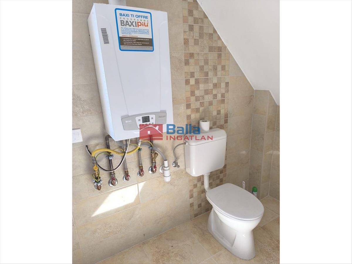 On the ground floor of the two-story apartment there is a bathroom with a shower, living room, dining room, kitchen, and upstairs there are two larger communal areas and three rooms with a bathroom with a bathtub. There is also a toilet in both bathrooms.