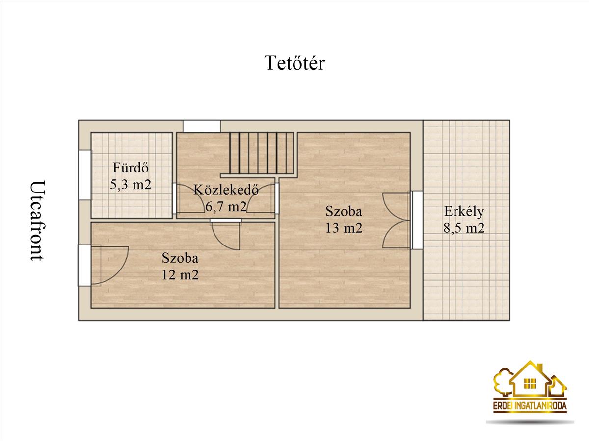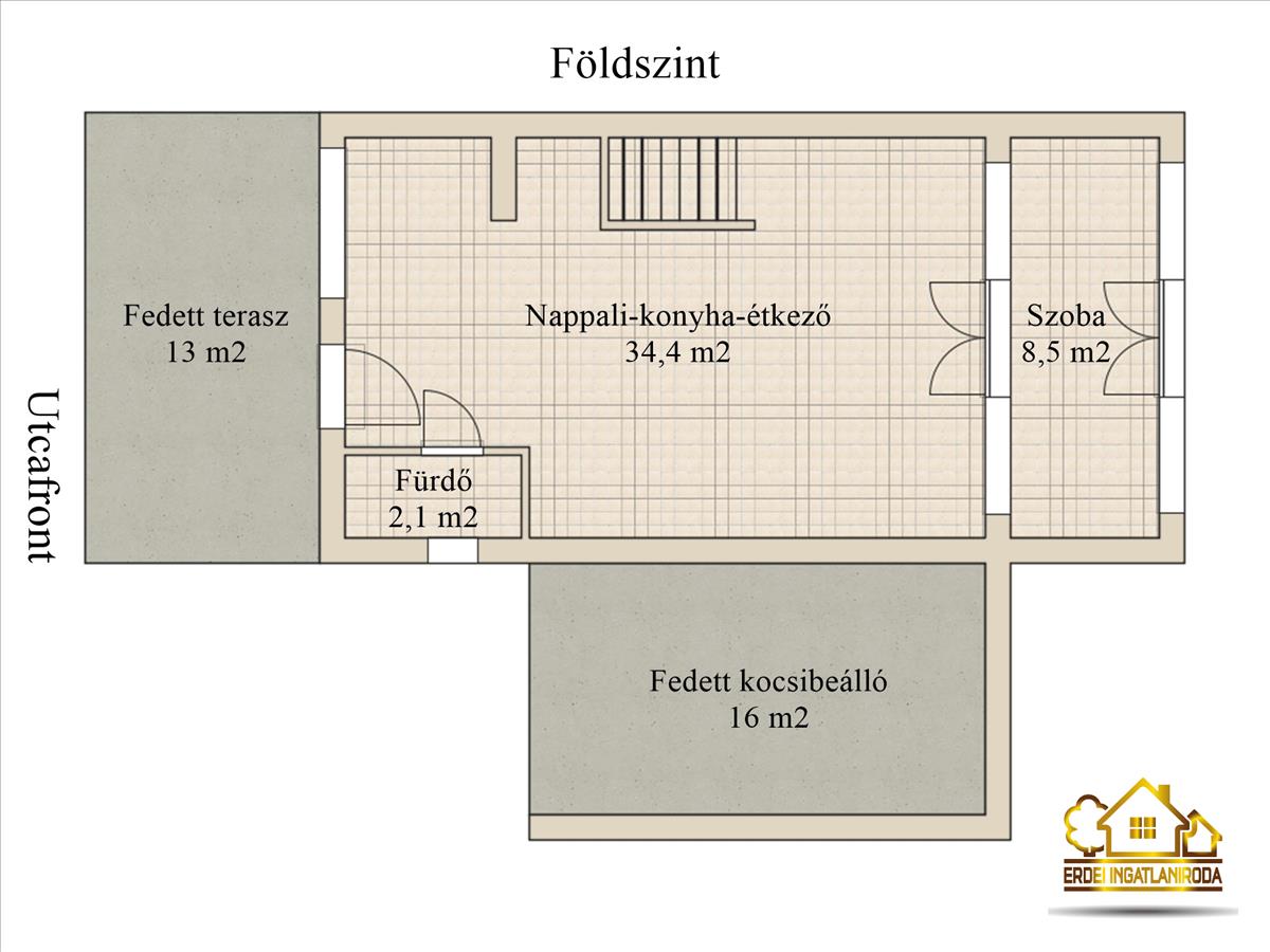 A bejárattal kapcsolódó 13 m²-es fedett terasz, a további kényelmünket szolgálja.