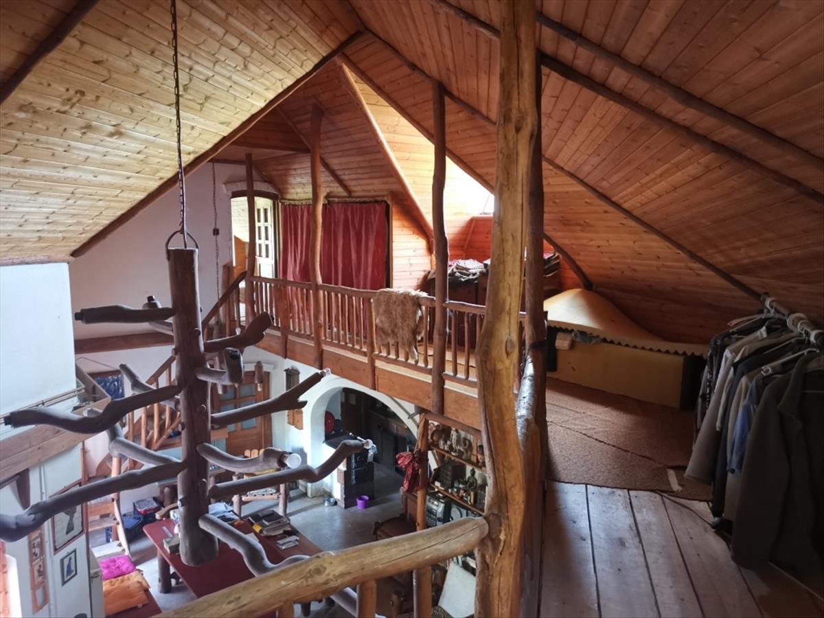 Az egész ház különleges hangulatát a rönkfa bútorok, az egyedi tervezésű galéria és az ide felvezető lépcsők adják. Az alsó szinten a hatalmas nappaliból nyílik két nagy szoba, itt található két fürdőszoba, a konyha és a kamra is. a kazánház kívülről közelíthető meg, innen juthatunk le a 14 m2-es pincébe. a felső szinten mindenhol beépített gardróbszekrények vannak, ezzel kihasználva a galéria adottságait. Itt található még két hálószoba. a tető karbantartást igényel, de még így is biztosítja télen-nyáron a kellemes hőmérsékletet.