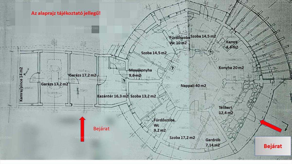 •+65 m² (fűtött garázsok, tárolók, kazánház, pince)