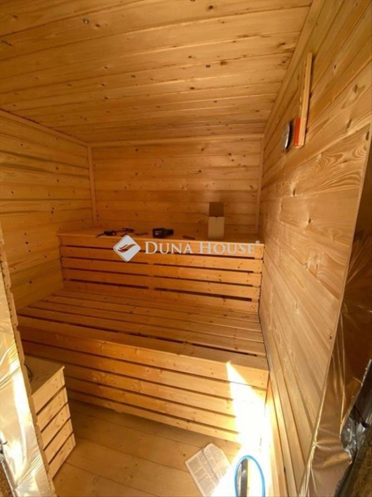 Főbb jellemzői: 28nm fedett terasszal, kamera rendszerrel, kerti tóval, fúrt kúttal- öntöző rendszerrel, 6fős szaunával, két állásos könnyűszerkezetes, zsindellyel fedett garázzsal, mely klimatizált ( jelenleg a családfő asztalos tevékenységét szolgálja ki) és kerti fatárolóval rendelkezik.