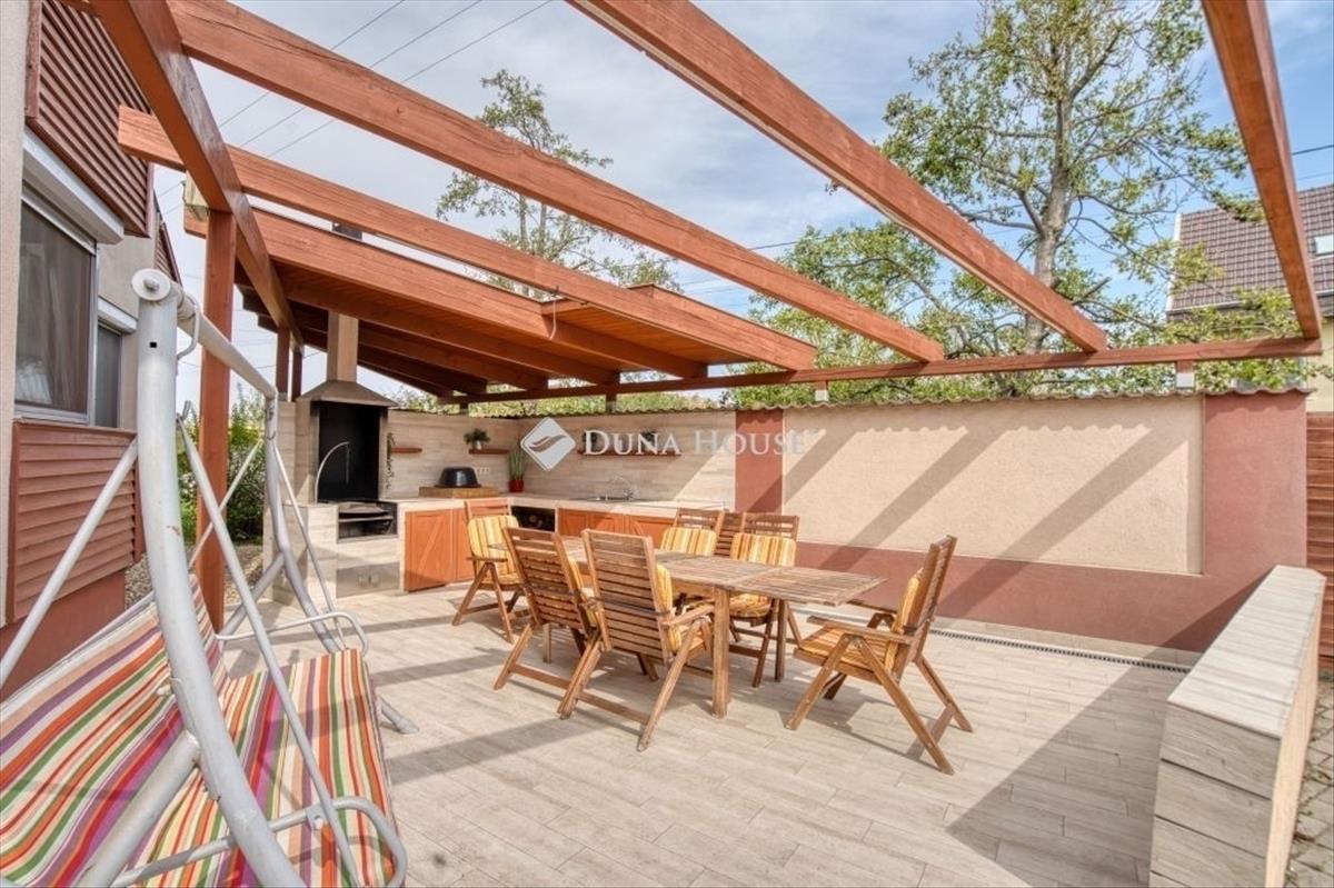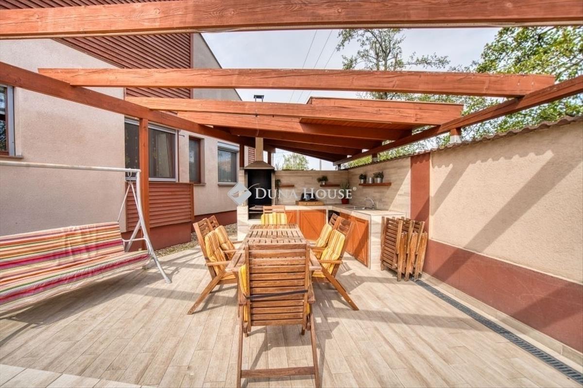 Délegyháza egyik legnyugodtabb, tóközeli részén kínálunk megvételre egy önálló családi házat, amely ideális választás azok számára, akik a természet közelségét keresik, mégis fontos számukra a jó megközelíthetőség és az élhető környezet. Az ingatlan egy tágas, 950 nm -es telken helyezkedik el, amely bőséges teret biztosít pihenéshez, kertészkedéshez vagy akár további fejlesztésekhez. a 2003-ban épült ház bruttó 150, 7 nm alapterületű, melynek földszinti nettó lakótere 116, 64 nm , valamint egy beépíthető padlástér is rendelkezésre áll. a belső elrendezés praktikus és jól élhető: három külön nyíló hálószoba, egy tágas nappali, konyha-étkezővel, valamint két fürdőszoba (egy kádas és egy zuhanyzós, mindkettő WC-vel) szolgálja a kényelmet. a házhoz két terasz is tartozik, melyek közül a nagyobb, közel 38 nm -es, kiváló helyszíne lehet családi vagy baráti összejöveteleknek. Emellett mosókonyha és külön gépészeti helyiség is kialakításra került, a fedett kocsibeálló pedig praktikus parkolási lehetőséget biztosít. a ház masszív, 30 cm-es Porotherm téglából épült, 5 cm-es hőszigeteléssel. a fűtésről egy megbízható Buderus kondenzációs kazán gondoskodik, radiátoros és padlófűtéses hőleadással. a nyári komfortot 5 darab split klíma biztosítja. Igény szerint teljes berendezéssel is megvásárolható, különálló konditerem, valamint egy hangulatos kültéri nyári konyha is helyet kapott a telken. a kert kifejezetten tágas és zöld, szőlővel és gyümölcsfákkal beültetve, amely igazi természetközeli életérzést nyújt. a környék csendes, rendezett, a közeli tavak néhány perc sétával elérhetők, így ideális választás azoknak, akik nyugodt, vízpart közeli életet szeretnének. a mindennapi élethez szükséges infrastruktúra szintén adott: a településen és a közeli városokban több bevásárlási lehetőség, kisebb boltok, élelmiszerüzletek, valamint nagyobb áruházak is elérhetők, így minden szükséges szolgáltatás könnyen hozzáférhető. Ez az ingatlan ritka lehetőség azok számára, akik egy nyugodt, természetközeli, mégis jól megközelíthető otthont keresnek. Amennyiben felkeltette érdeklődését, keressen bizalommal, és tekintsük meg együtt személyesen is!