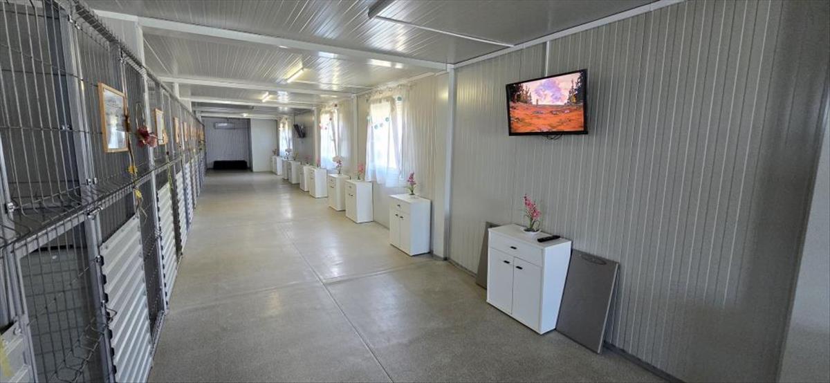 - 120 m²-es egyedi konténer épület: teljes komfort, légkondi, világítás, tv, mosdó, WC