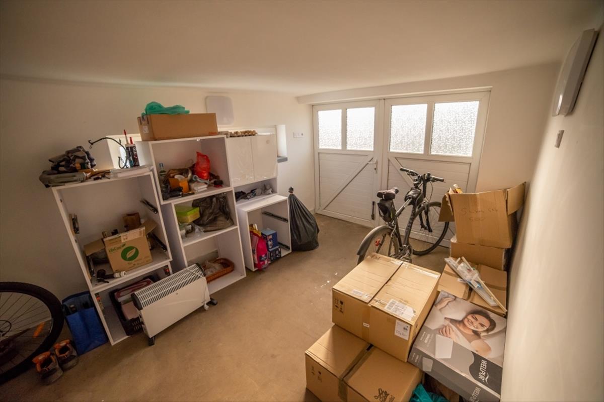 Az épület garázsként is használható. a gépkocsi beállásán kívül egy nagyobb és egy kisebb tárolóhelyiség, és felújítandó zuhanyzó és wc van.