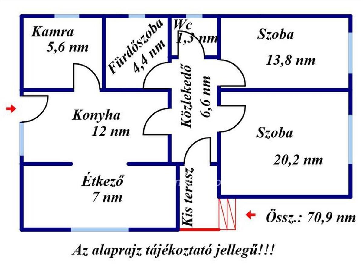 Ez a 70, 9 négyzetméteres családi ház beton alapra épült, tégla falazattal és cserép fedésű tetővel. Stabil, időtálló szerkezet, amely jó kiindulópont lehet egy barátságos, élhető otthon kialakításához. Két tágas szoba adja a ház lelkét, mellettük konyha, étkező, kamra, fürdőszoba, külön wc és közlekedő található. a jelenlegi elrendezés jól átgondolt, ugyanakkor egy felújítással könnyedén a saját elképzeléseidhez formálható. Az alaprajz a képek között segít ebben.