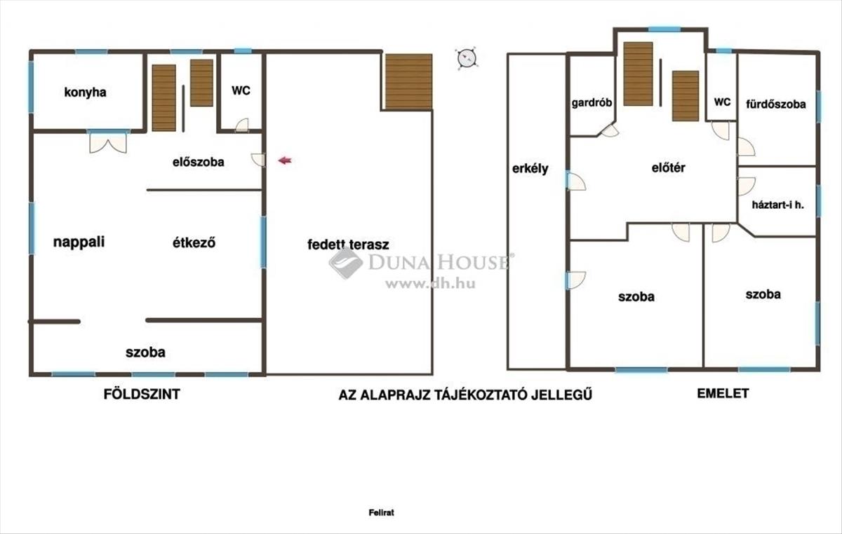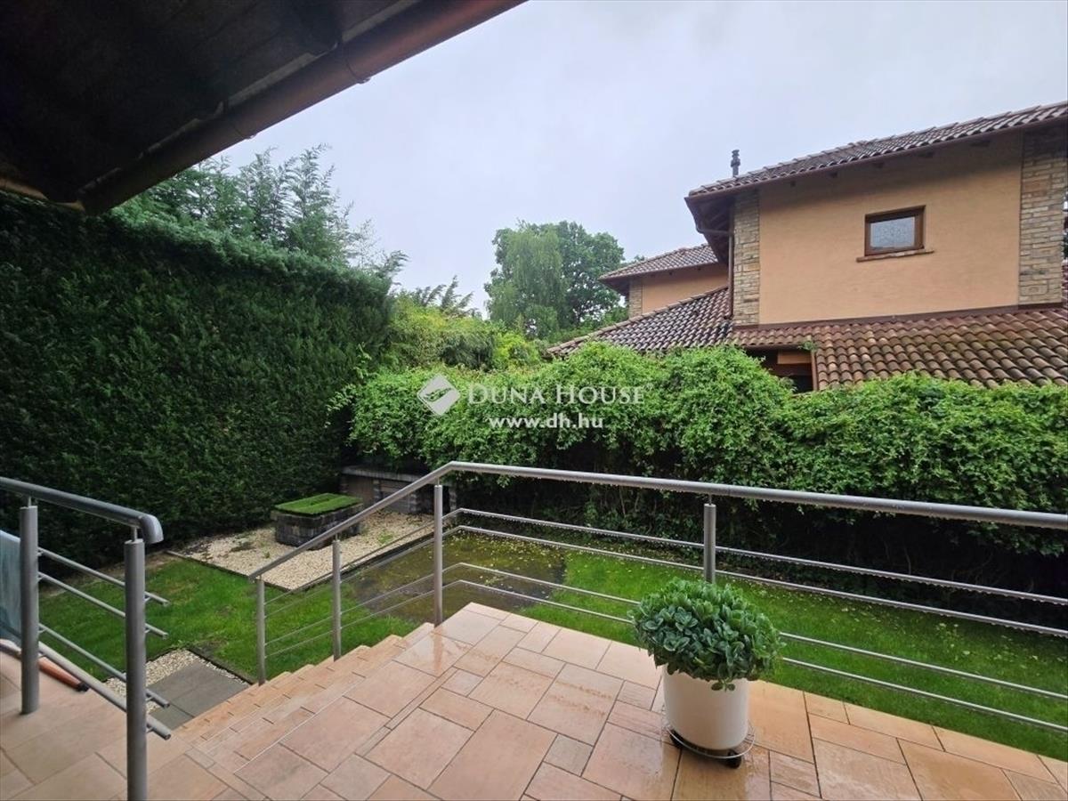 A fedett terasz közel 50 m2-es, az emeleten pedig egy 12 m2-es, szép panorámával rendelkező erkély van.
