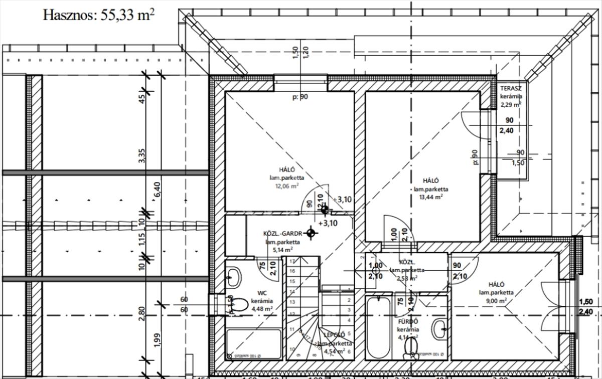 •5, 14 m2-es közlekedő- 4, 54 m2 lépcsőtér