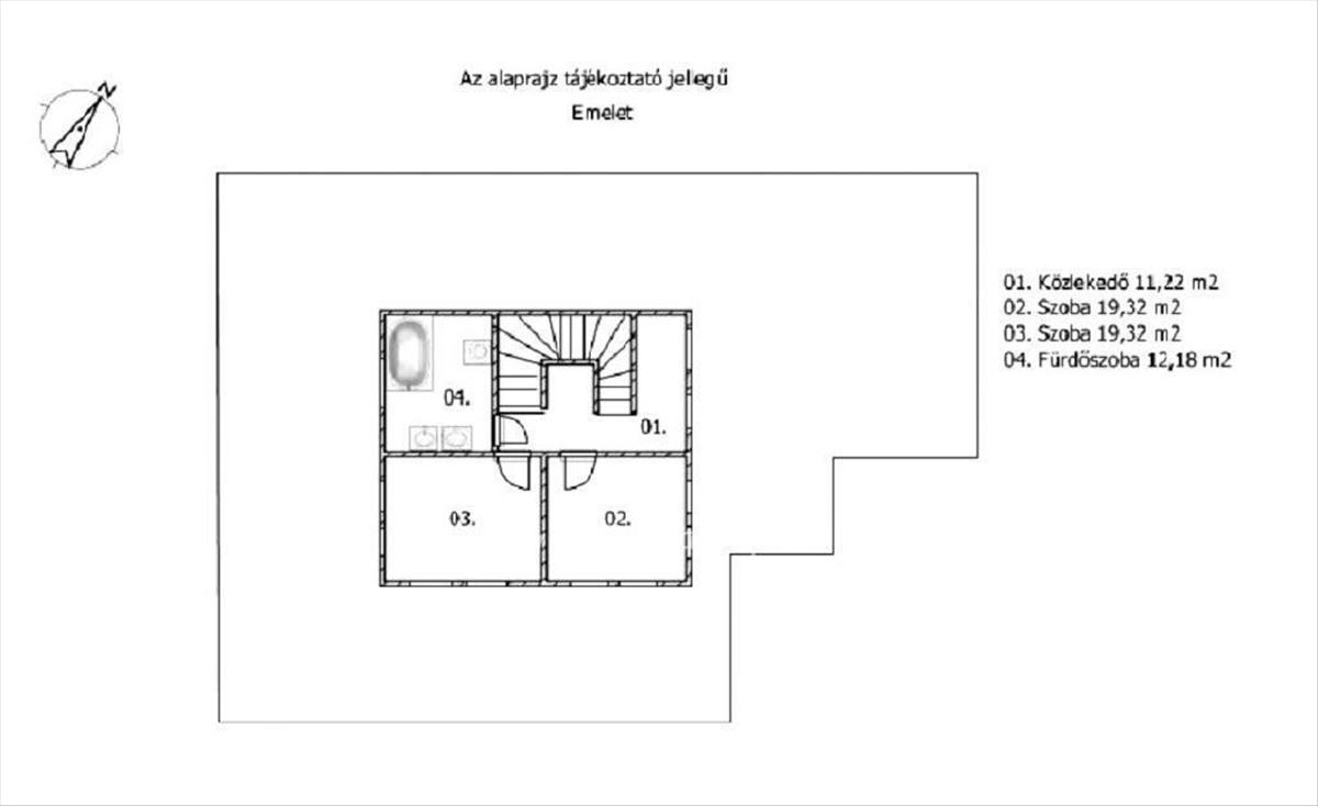 HELYISÉGEI: a földszinten található 73, 93 m2-es Nappali - konyha - étkező. Innen nyílik a szülői lakosztály: hálószoba 20, 20 m2 + épített zuhanyzós fürdőszoba WC-vel és bidével 6, 09 m2 + gardrób 6, 09 m2. Ez összesen 32, 38 m2. a földszinti részen található még a háztartási helyiség 7, 54 m2, kamra 3, 42 m2, a tároló 4, 16 m2, különálló wc bidével és kézmosóval 2, 52 m2, az előszoba 8, 41 m2, valamint a két állásos garázs, ami 46, 97 m2. Az emeleten található két darab 19, 32 m2-es szoba, a közlekedő 11, 22 m2, valamint a kádas fürdőszoba WC-vel és bidével, ami 12, 18 m2-es.
