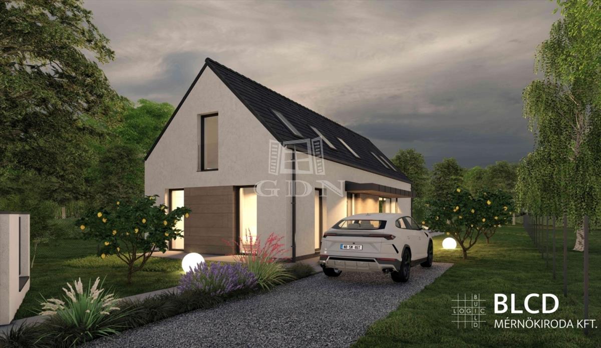 A telekre 2 szintes, összesen 145 nm-es hasznos alapterületű (nettó 110 nm) családi házat terveztek, melynek földszintjén amerikai konyhás nappali, fürdő, háztartási helyiség, és egy szoba kap majd helyet. Az emeleten 2 hálószoba, fürdőszoba, és külön wc kerül kialakításra.