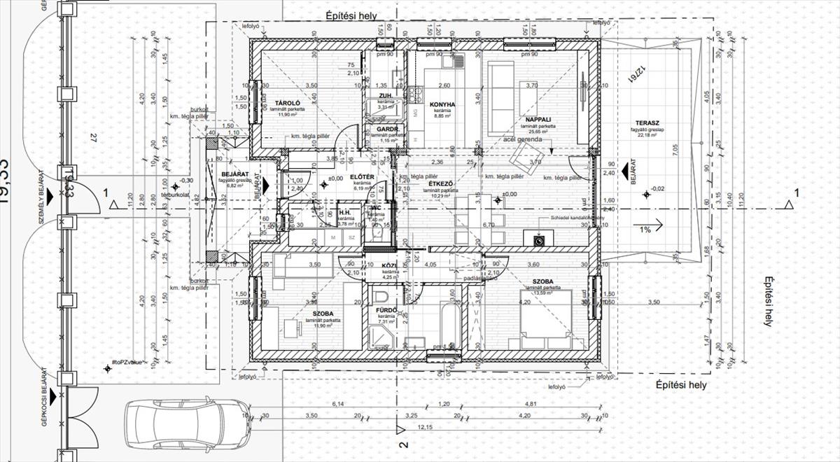 Gépkocsi tárolás a telken belül két gépkocsi parkolására alkalmas, térkövezett parkoló lesz kialakítva.
