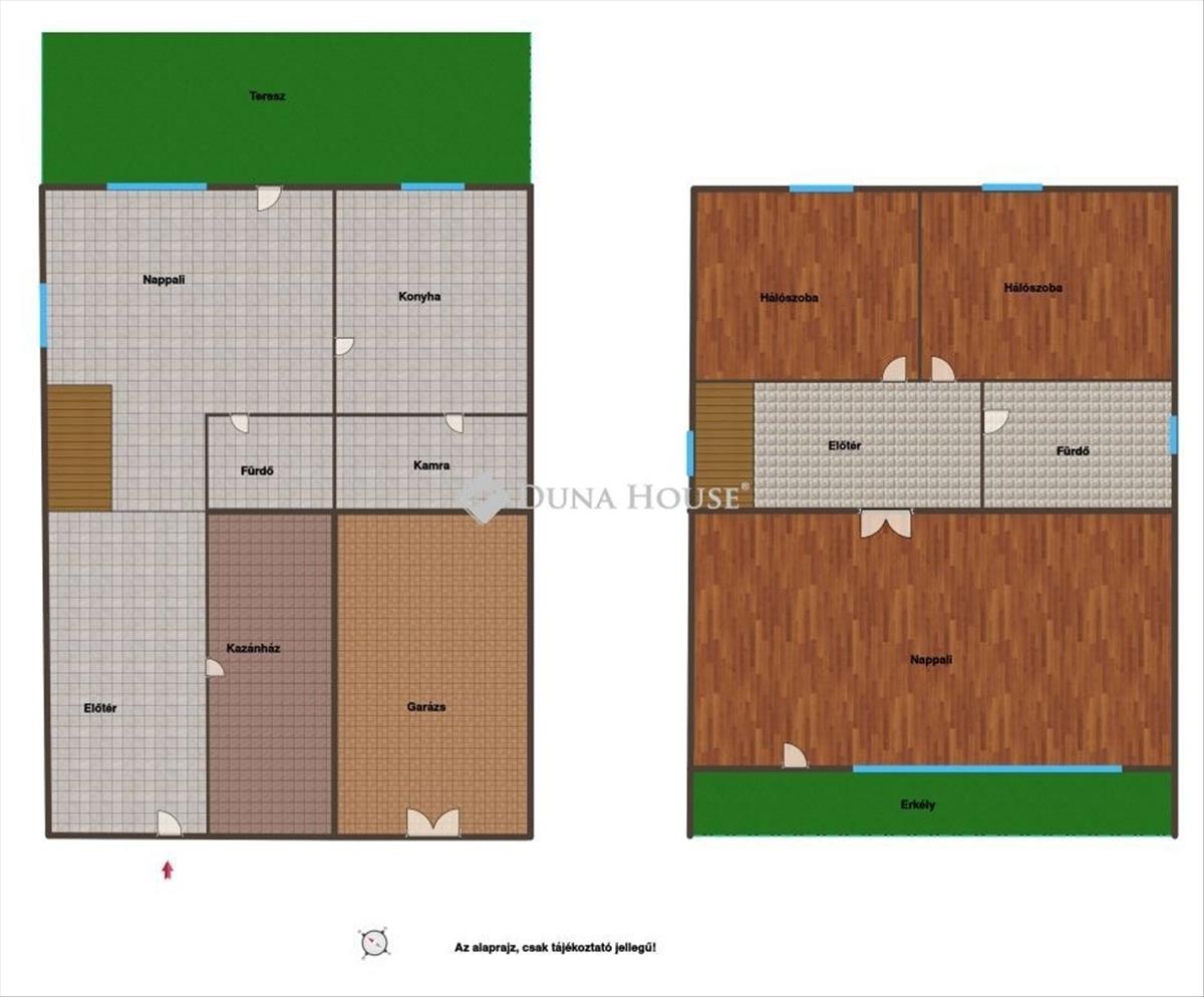 * a földszinten nappali, külön konyha, fürdő, kamra, valamint garázs és kazánház található