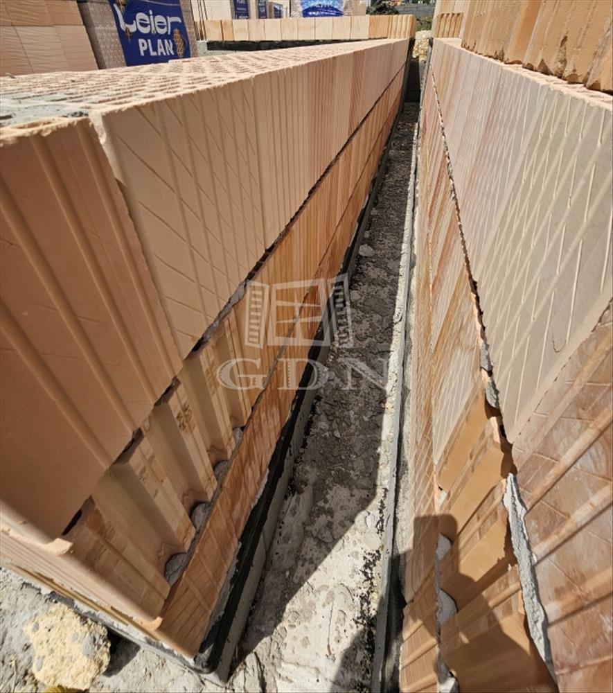 •Az épület szigetelt, vasbeton sávlap alapra épült, 30-as Porotherm tégla tartófalakkal, 10-es vakolt tégla válaszfalakkal.