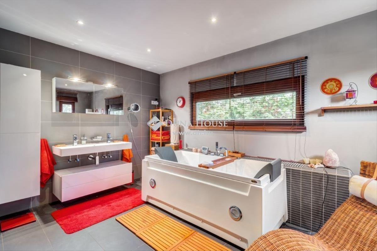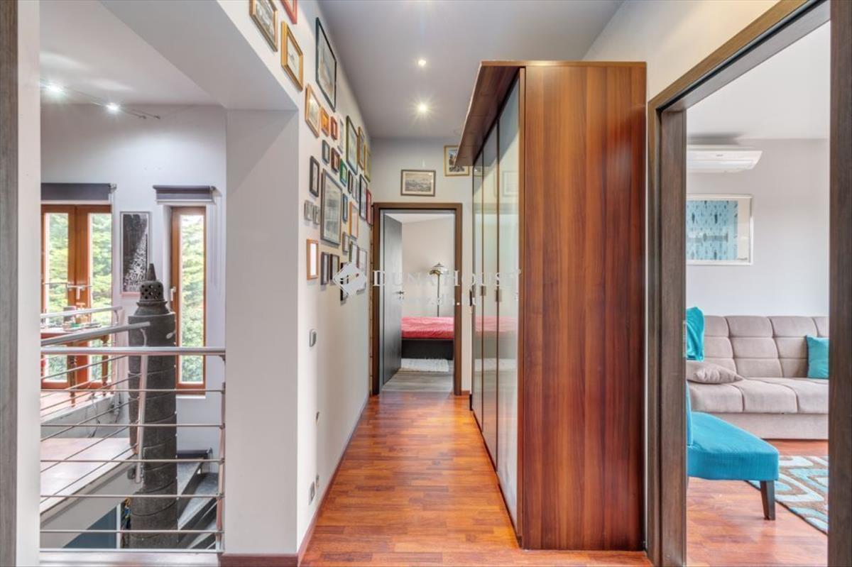 A házat különlegessé teszik az egyedi belsőépítészeti megoldások, a lakóterek kényelmes, praktikus kialakítása, a minőségi belga beépített anyagok, a látszó beton képcső és számos extra felszereltség:- modern, egyedi tervezésű gépesített konyhabútor - eredeti fából készült, Merbau parketta - padlófűtés- kandalló- inverteres klímák- süllyesztett fűtés az ablakok alatt- szintenként szabályozható termosztát- árnyékolók- kültéri épített medence.