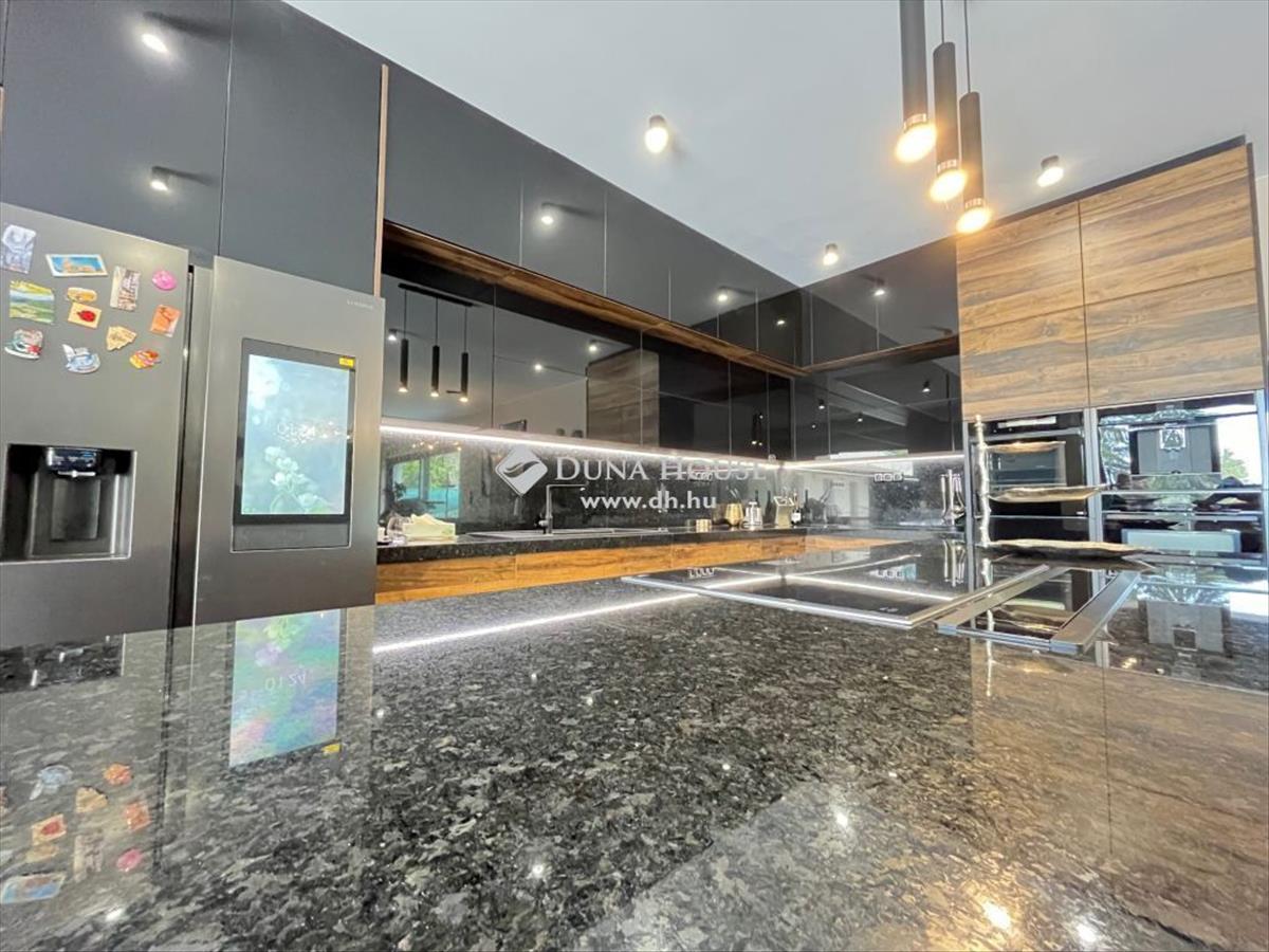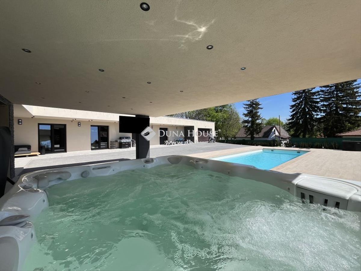 Newly built, completed passive house! ! ! For sale, in the popular part of Diósd Fenyves, a 520 m2 American kitchen, minimalist, modern a+++ technical content, luxury style, uniquely designed family house on a plot of 2460 m2 that satisfies all needs. Living area 358 m2, 105 m2 with covered terrace, 6 rooms, 2 bathrooms. The huge floor area is located on one level and, more importantly, it is a completely passive house. You only have to pay for the garbage delivery. Technical content and extras:- Monolithic reinforced concrete structure, 30 cm Porotherm main wall, ytong partition wall, 20 cm vtg graphite insulation, facade limestone cladding - pvc doors and windows with 3-layer glass, and motorized shutters that also work with a remote-controlled unit! ! ! Features of the house :Heat pump system floor heating, ceiling cooling, heat recovery mechanical ventilation, 20 kw Solar energy system mounted on the roof, own drilled well, which supplies the property with mineral water quality. Alarm system with motion and opening sensors, intercom, cable tv and Internet - Smart home control - Limestone cladding fence, electric gate, automatic irrigation system, rainwater collection tank! ! ! Covered garage for two cars, electric car charger. Large paved terrace, extra-large sliding doors that enlarge the already huge spaces. 10X4m pool with separate hot water supply provided by a heat pump, 8-person jacuzzi, sauna. Further details upon personal consultation. If you are interested in this quality home, feel free to contact me. Hitel.hu - Hasonlítsa össze a bankok lakáshitel ajánlatait