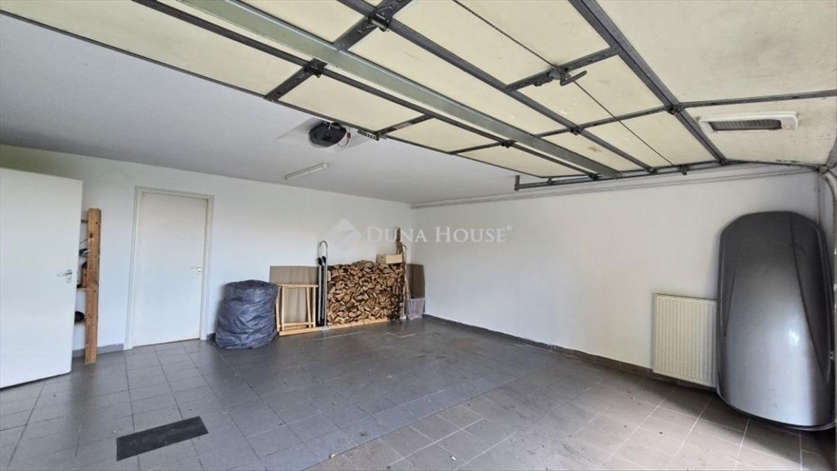 A félszuterén szint a kiszolgáló funkciókat látja el: tárolók, kamra, háztartási helyiség/kazánház, valamint egy közel 35 m²-es garázs található itt. Az egyik tároló közvetlen kertkapcsolattal rendelkezik, így akár önálló lakrésznek, irodának vagy hobbihelyiségnek is kiváló.
