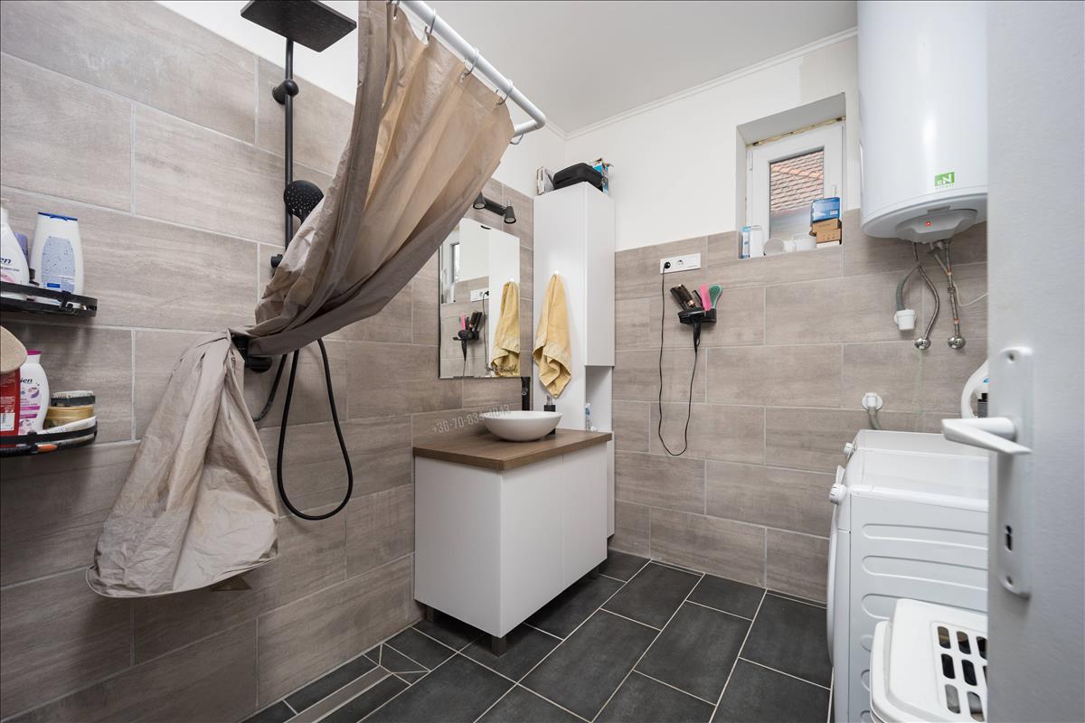 A családi ház csendes utcában, a központhoz közel található. a ház lakóterének hasznos alapterülete 100, 97m2. Három éve folyamatos felújítás alatt van, található benne egy előtér, nappali, 3 szoba, konyha kamra, fürdőszoba és wc külön helyiségben. a két külön bejáratú szoba a nappaliból nyílik, a harmadik szoba a konyhából megközelíthető.