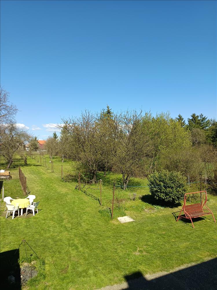 -Füves kert, amin sok gyümölcsfa, termő gyümölcs, szőlőlugas van.