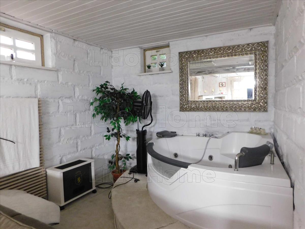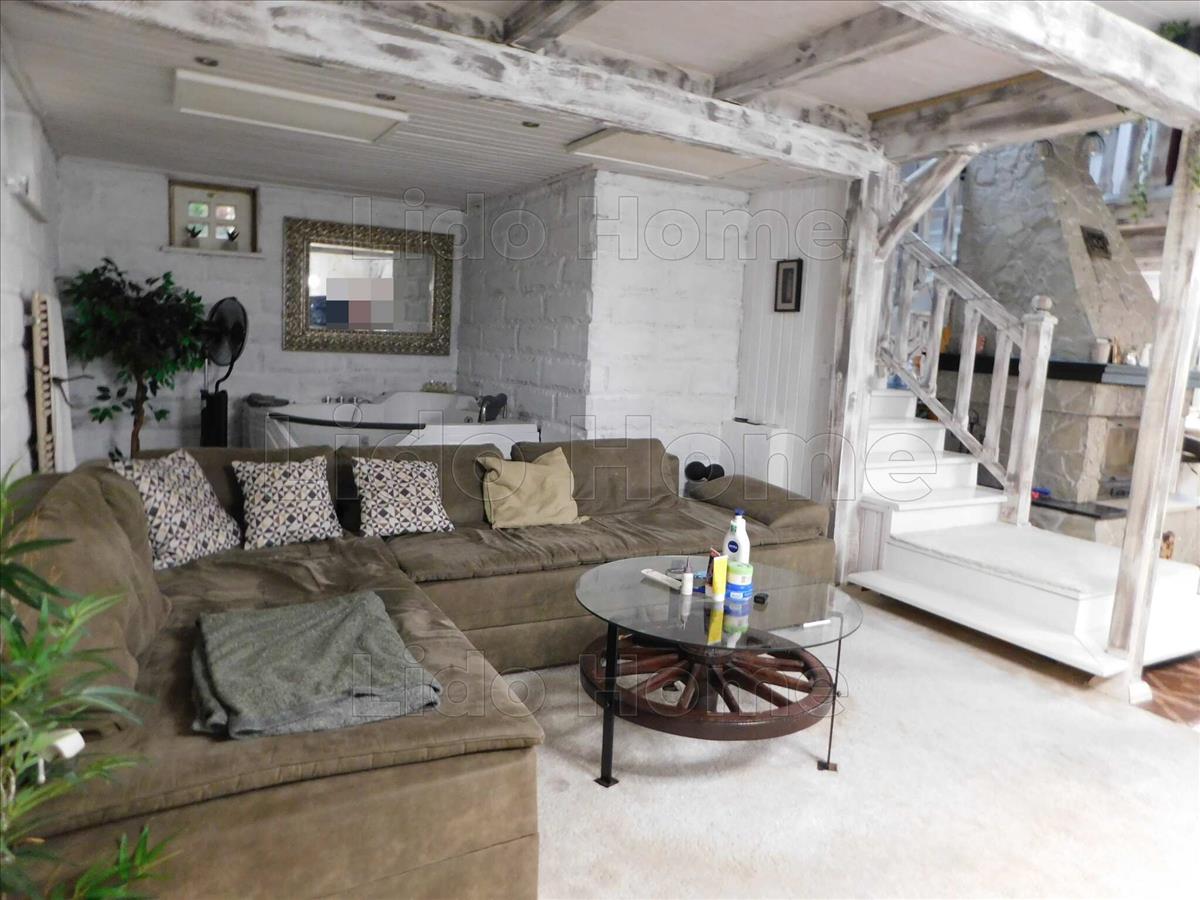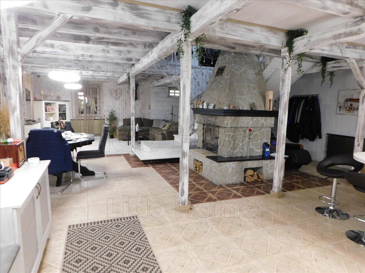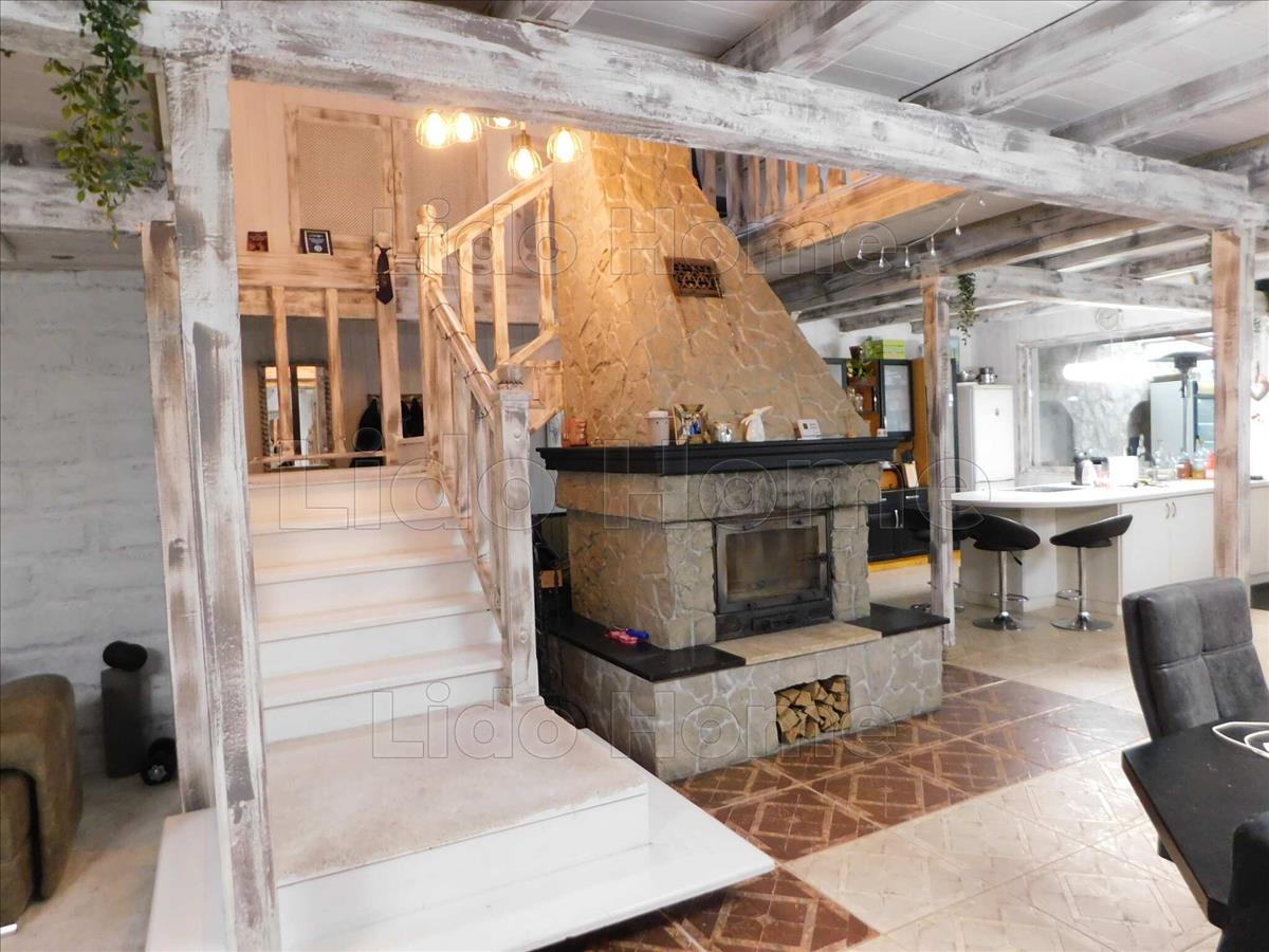 Ezen a szinten szinte minden egy légtérben található: konyha, étkező, nappali, nyitott fürdő, melybe egy jakuzzi került. És egy zárt illemhely. Nagyon kellemes, világos, tágas a vintage stílus jegyeiben. a nappali közepén egy impozáns kandalló található, mely az egész házat befűti a téli időszakban és mindemellett nagyon hangulatos.