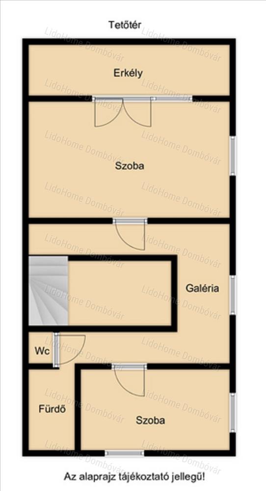 A tetőtérbe 2 szoba található, erkély, fürdő, illemhely és galéria. a helyiségekbe rejtve találhatóak különböző méretű beépített szekrények. Az erkély szintén a tóra néz és a körülötte lévő erdős területre.