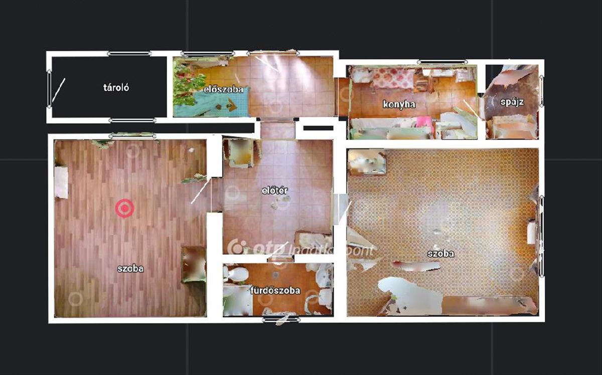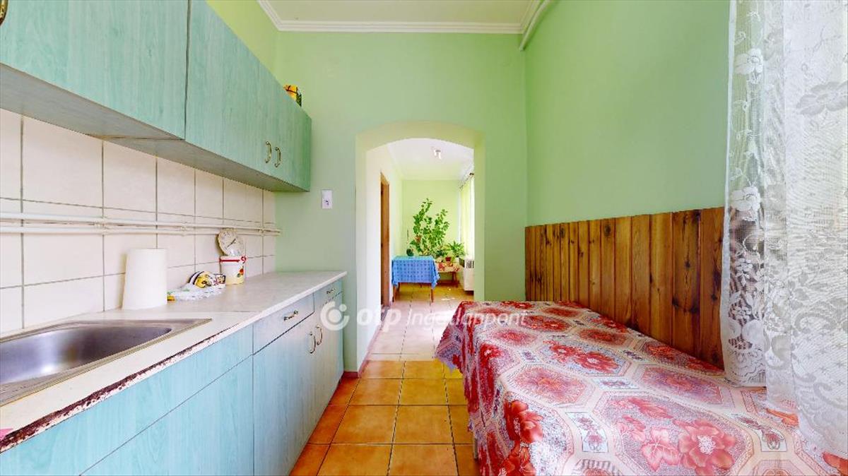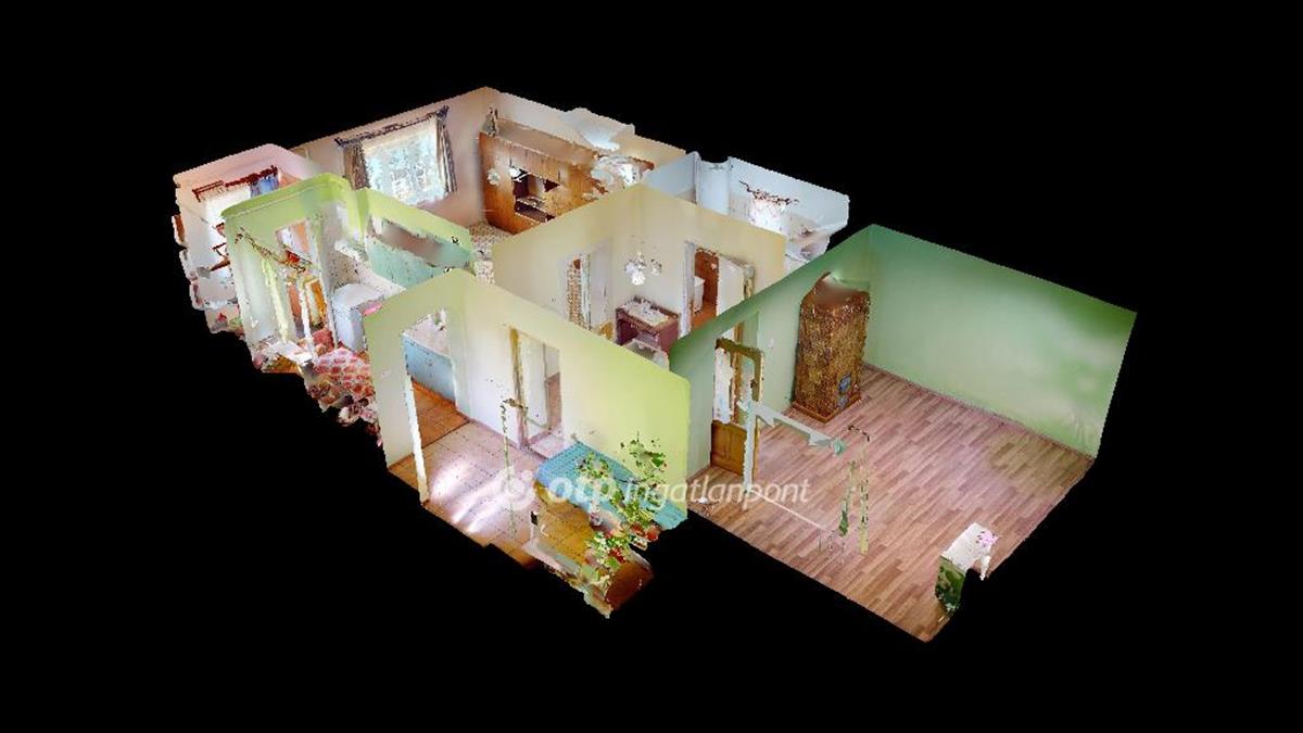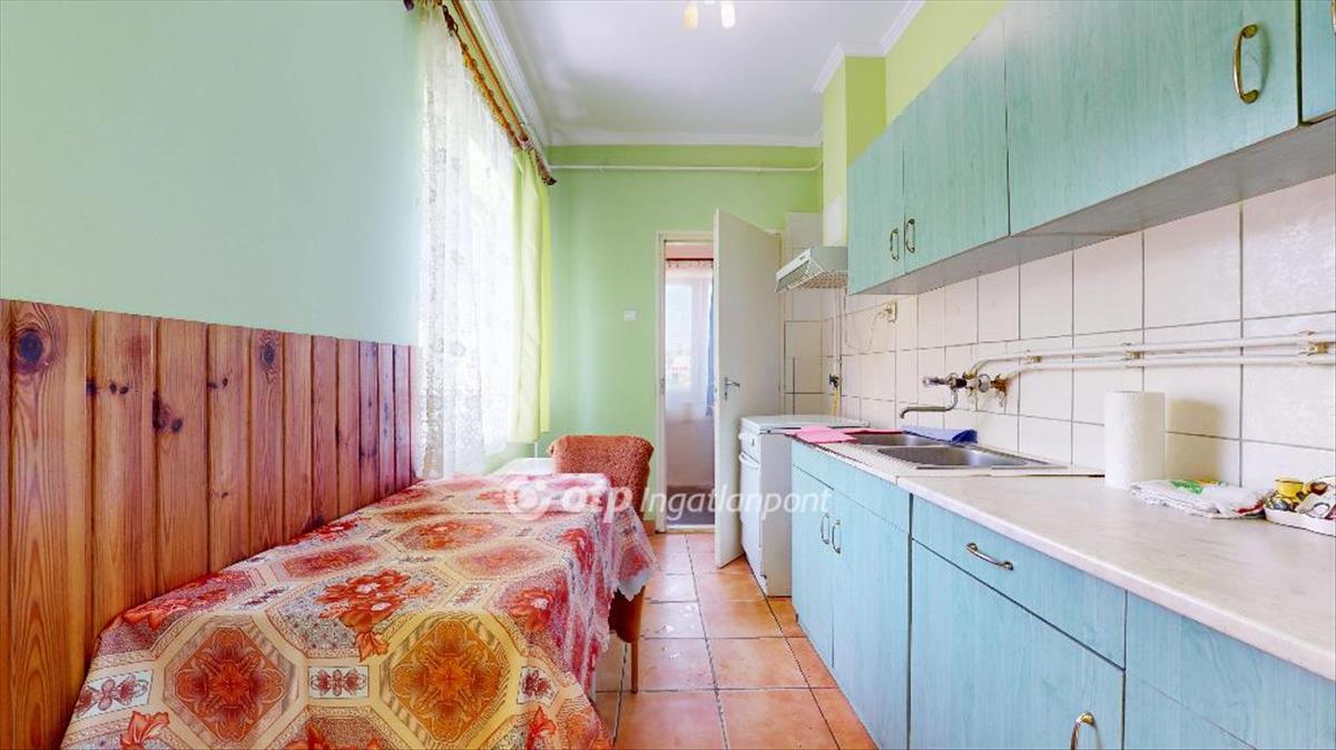 A két szobás 76 m2-es ingatlan 1960-ban épült, terméskő alapra, vályog falazattal.