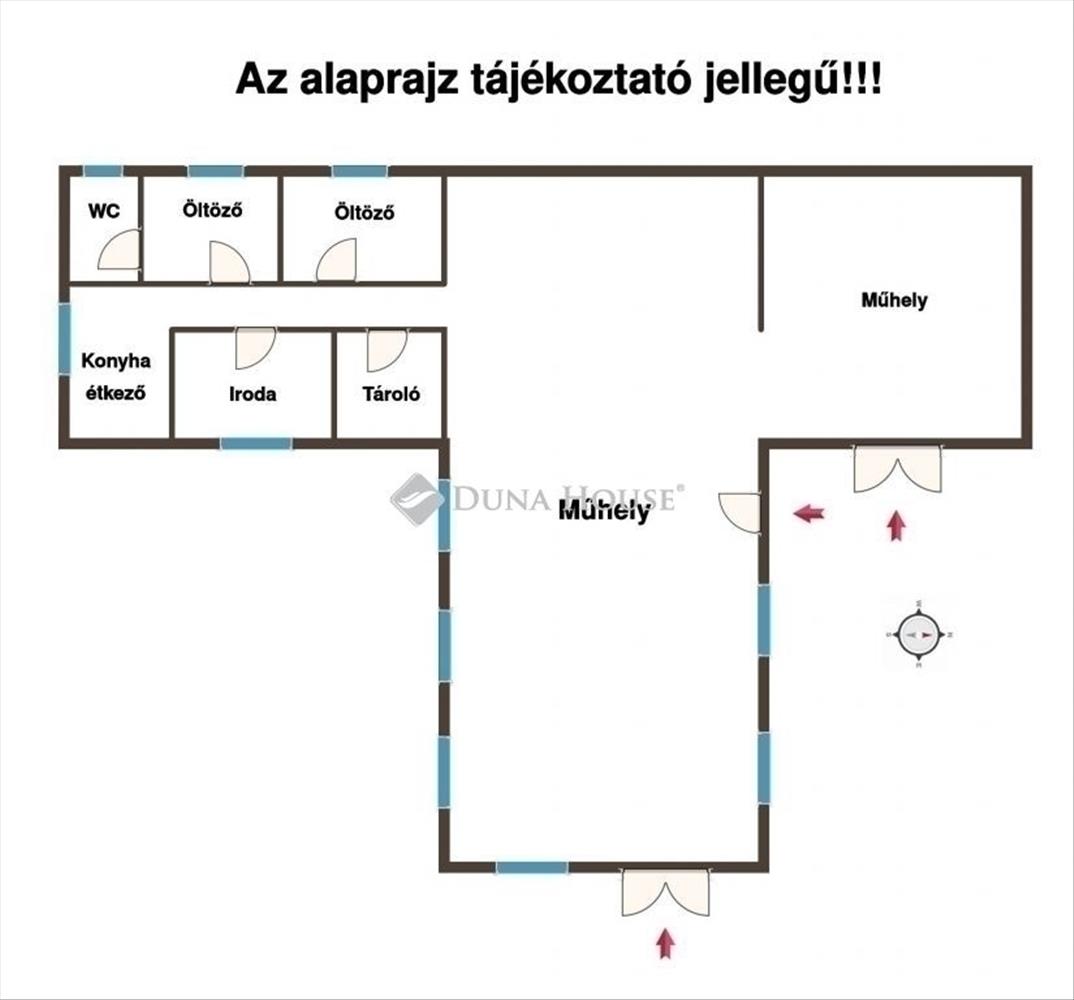 - Található benne: 2 öltöző WC-vel, konyha + étkező, iroda és tárolóhelyiség