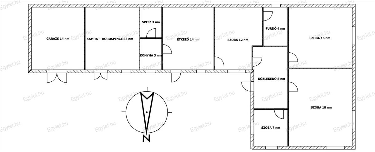 Az ingatlan teljes területe a pincével együtt: 133 nm.