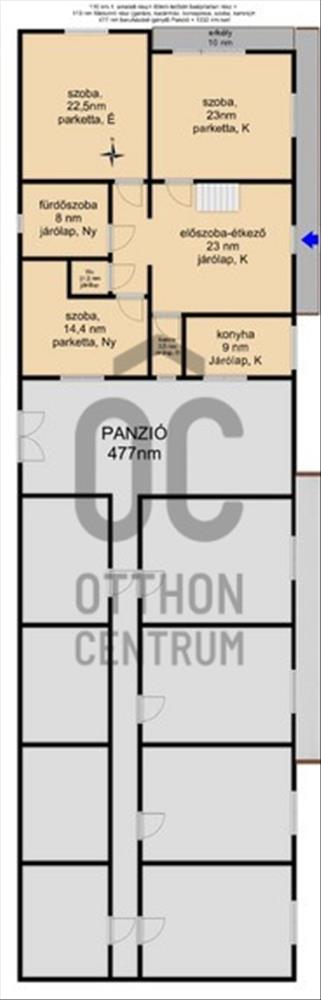 -477 nm-es hasznos területűberuházást igénylő, kétszintes szerkezetkészépület, számos lehetőséggel
