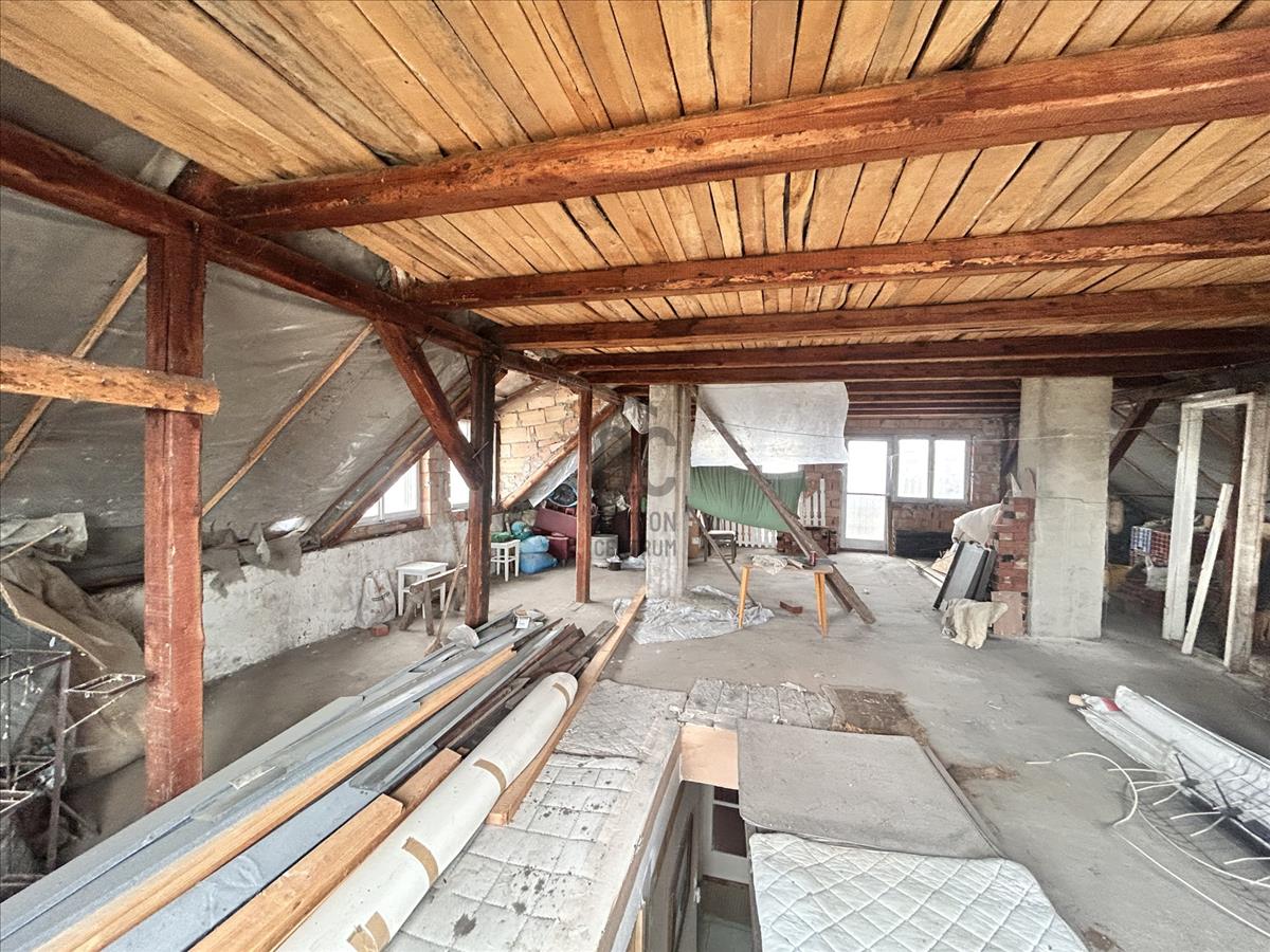 - tetőtérben, beton koszorú és tégla falazat
