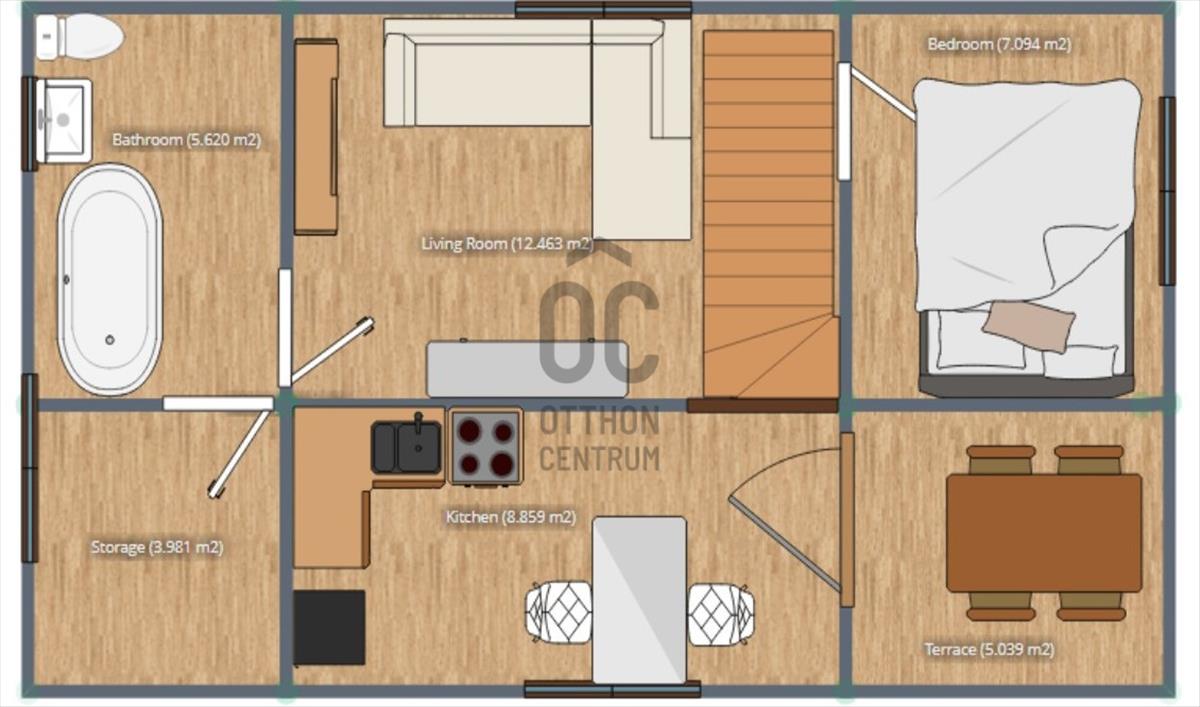 A tulajdonos tervei szerint egy alacsony rezsivel rendelkező állandó lakhatásra alkalmas házat szeretett volna kialakítani. Ennek a megvalósítása azonban az új tulajdonos feladata lesz.