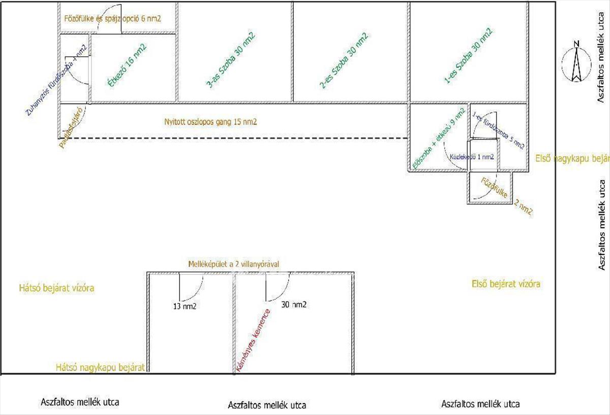 - Víz- és villanyórák: 2 vízóra akna, 2 villanyóra a melléképület oldalán, mely lehetőséget ad kétlakásos hasznosításra vagy bérbeadásra is.
