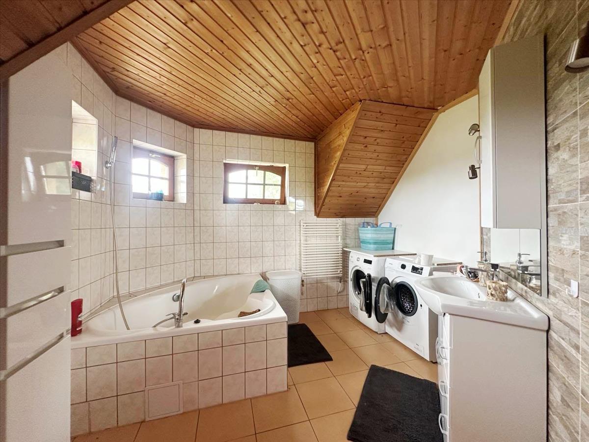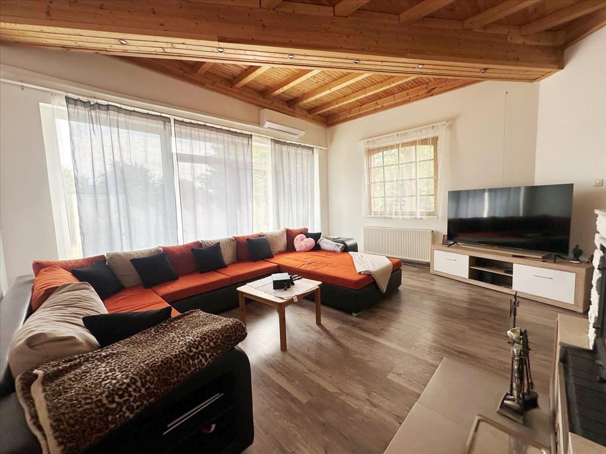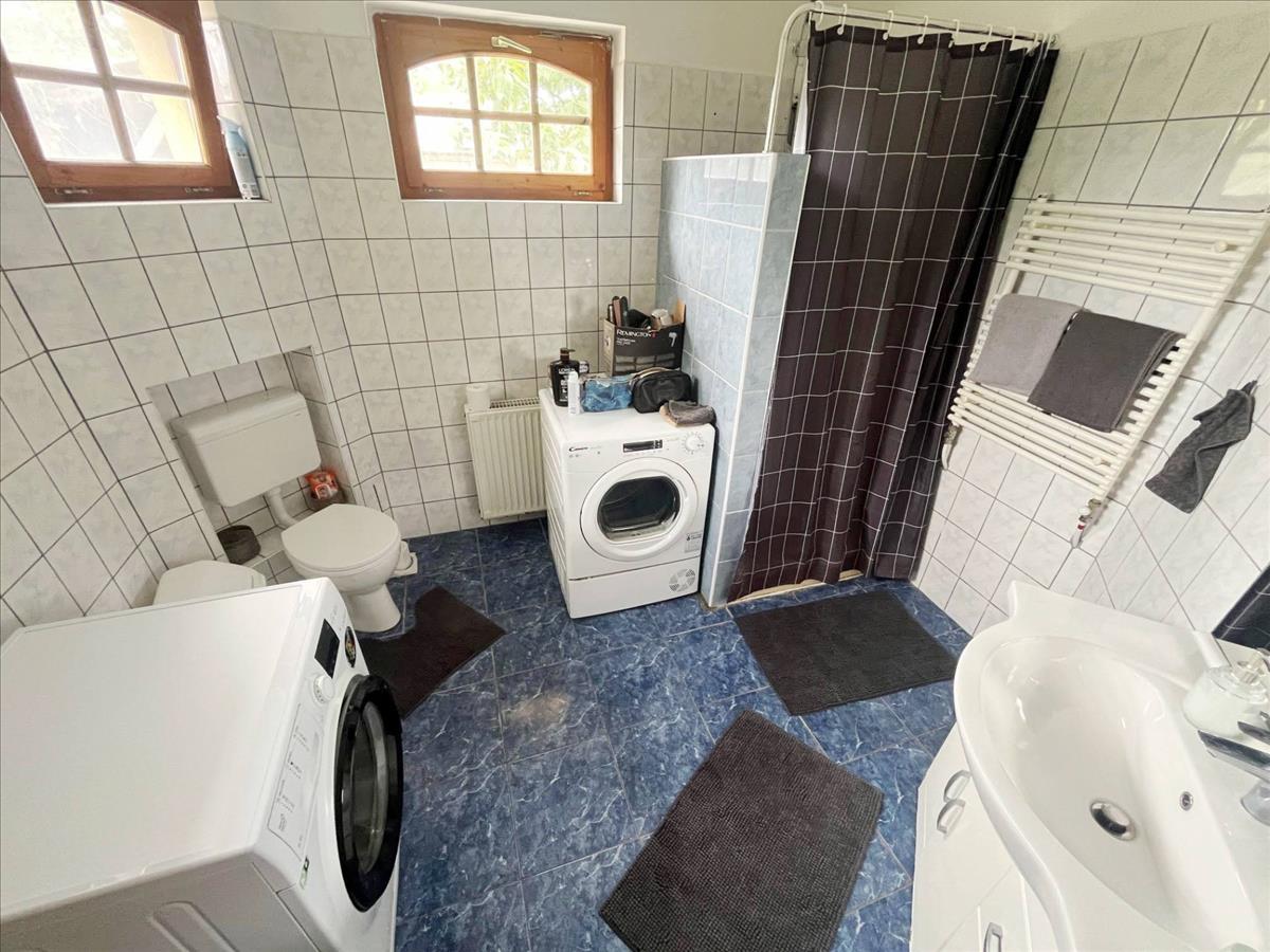 • Fűtés: gázüzemű kombi cirkó + elektromos kazán (szuterénben), radiátorokkal + klíma mindkét lakószinten + vegyes tüzelésű kandalló