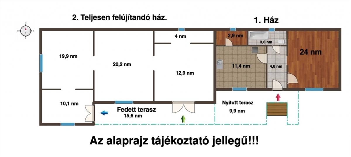 -Méret: 46, 7 m² + 9, 9 m² betonozott nyitott terasz