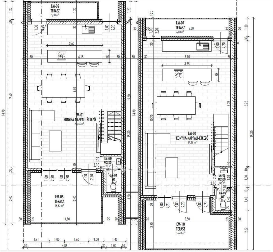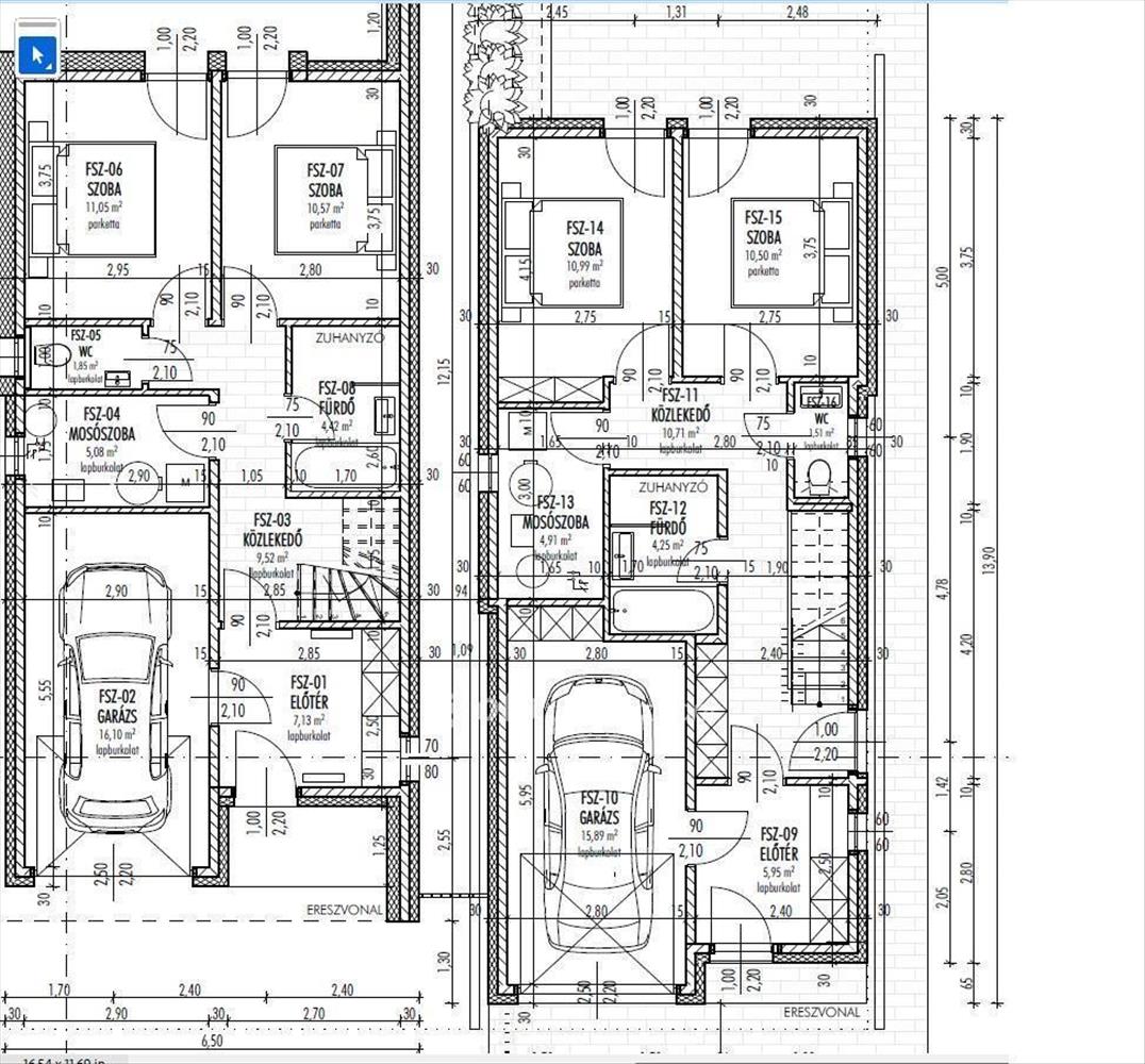Ikerház területe áll: 105, m2 lakótér + 23 m2 teraszok + 15, 9 m2 garázs, azaz 120, 2 m2 hivatalosan.