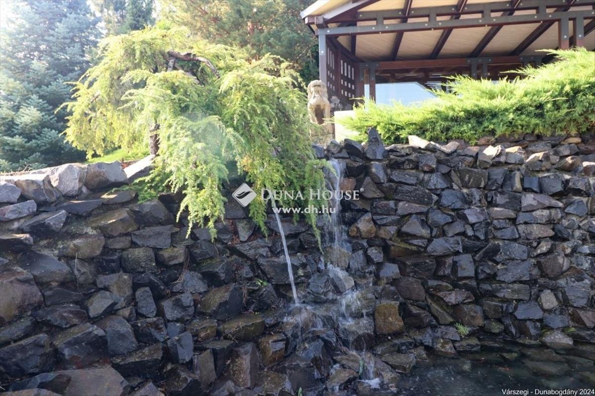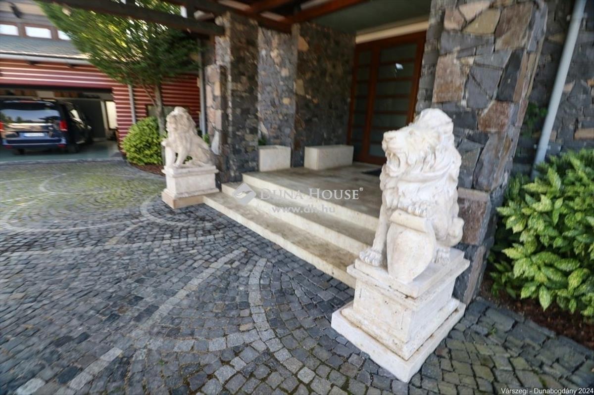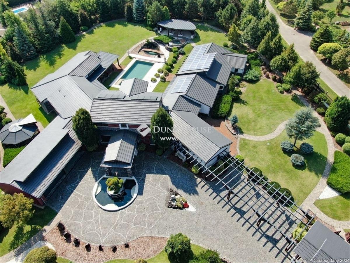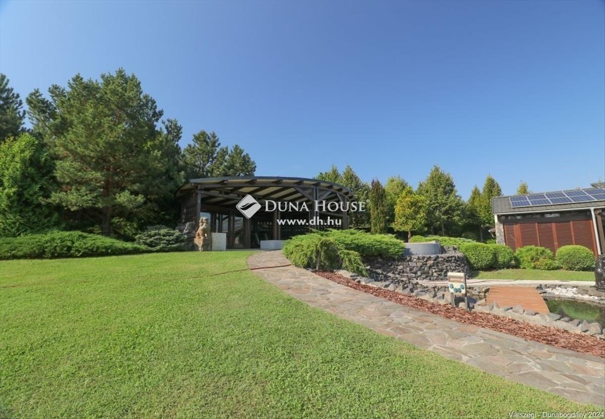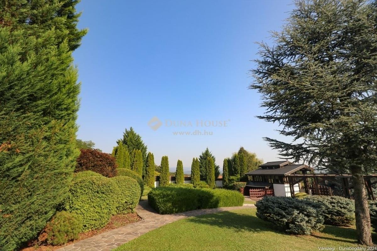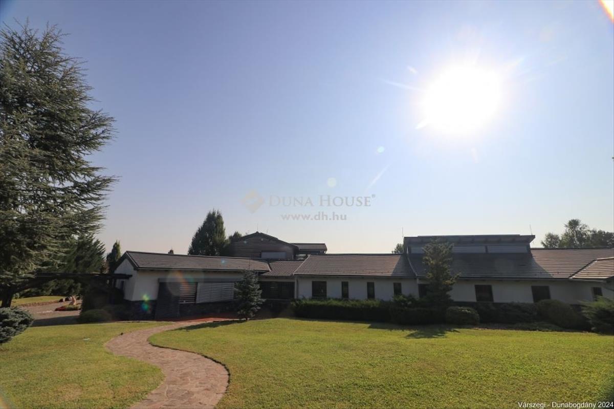 Éteri csendet, harmóniát, a természettel összeolvadó életet kedvelők figyelem! Dunabogdány-Bogonhát majorban eladóvá vált ez a csodálatos bírtok 8500 nm-es telken, mely teljesen körbekerített. Az ingatlan 3 generációs, extra magas műszaki felszereltséggel, különleges hangulatú épületegyüttes. Rengeteg extra kényelmi funkcióval ellátott, óriási kültéri medence, jacuzzi és szaunaház, gyönyörű parkosított kert található meg. a telken található főépület egy egyedi tervezésű luxus kialakítású, minden igényt kielégítő, összesen 3 lakrészre tagolható, több generációs családi ház, mely alapvetően földszintes kialakítású, kis részében van csak emeleti szintje, ahol egy társalgó kapott helyet. a kis méretű pinceszinten gépészeti helyiség van. Az épület 2010-ben épült, az akkori kor igényeit messze túlszárnyaló gépészeti, esztétikai, műszaki tartalommal. a ház karbantartása, állagmegóvása folyamatos, rajta meghibásodásra, vagy állékonyságát veszélyeztető probléma nincs. a telken külön építményként került kialakításra egy szaunaház, több tároló és kiszolgáló építmény. a ház déli, belső udvarán medence, jakuzzi került, melyek az átlagostól jóval nagyobb kialakításúak. a házban összesen 3 lakrész, 7 szoba, egy nagy hall, 4 nappali, 4 fürdőszoba, 3 konyha, több wc és számos kiszolgáló helyiség kapott helyet, illetve kapcsolódikhozzá egy 88 nm-es garázs is, mely 4 gépjármű egyidejű parkolására ad lehetőséget. Az épület stílusa egyedi, leginkább a természetes anyaghasználat emeli magas szintre, ugyanis nagy felületeket burkoltak természetes kővel, faanyagokkal. Mindezeket figyelembe véve, egy renkívül tudatos, és élménygazdag épületegyüttes kerülhet az új tulajdonos birtokába. Várom megtisztelő megkeresésüket akár hétvégén is!Irányár: 1999000 EUR