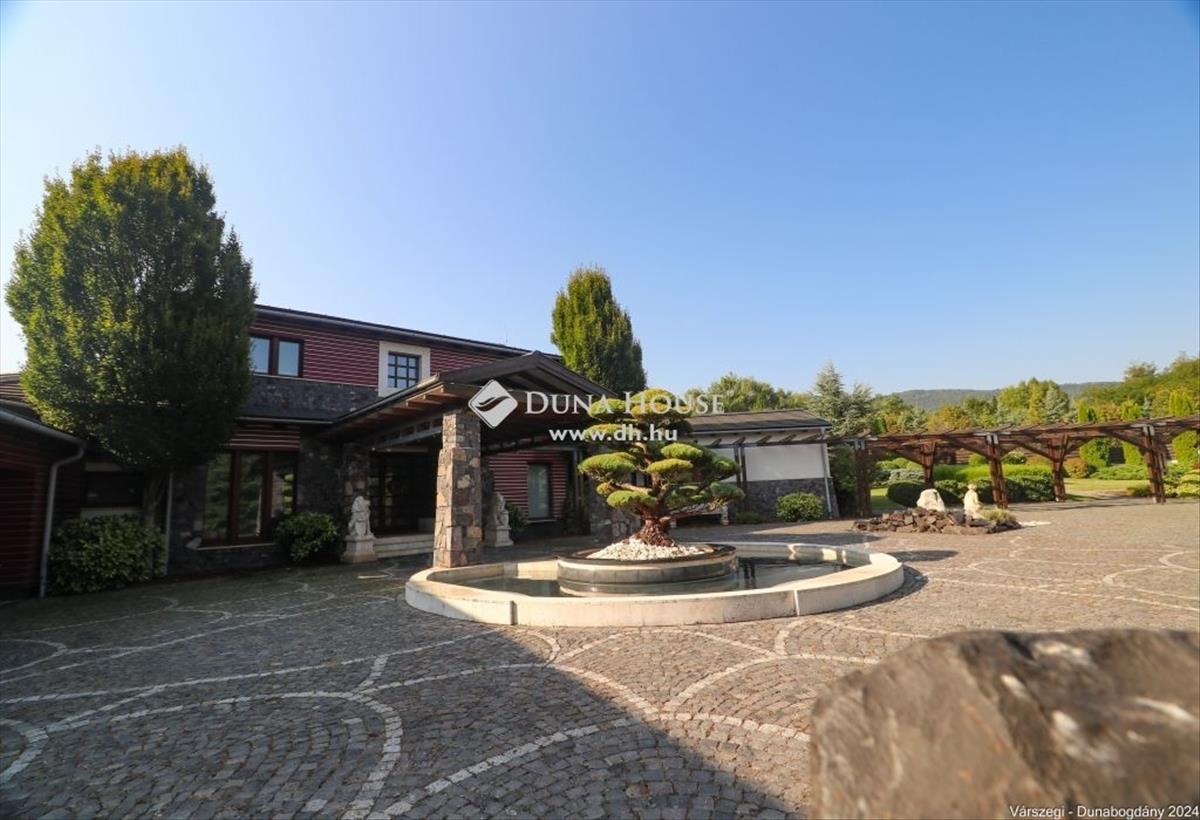 Éteri csendet, harmóniát, a természettel összeolvadó életet kedvelők figyelem! Dunabogdány-Bogonhát majorban eladóvá vált ez a csodálatos bírtok 8500 nm-es telken, mely teljesen körbekerített. Az ingatlan 3 generációs, extra magas műszaki felszereltséggel, különleges hangulatú épületegyüttes. Rengeteg extra kényelmi funkcióval ellátott, óriási kültéri medence, jacuzzi és szaunaház, gyönyörű parkosított kert található meg. a telken található főépület egy egyedi tervezésű luxus kialakítású, minden igényt kielégítő, összesen 3 lakrészre tagolható, több generációs családi ház, mely alapvetően földszintes kialakítású, kis részében van csak emeleti szintje, ahol egy társalgó kapott helyet. a kis méretű pinceszinten gépészeti helyiség van. Az épület 2010-ben épült, az akkori kor igényeit messze túlszárnyaló gépészeti, esztétikai, műszaki tartalommal. a ház karbantartása, állagmegóvása folyamatos, rajta meghibásodásra, vagy állékonyságát veszélyeztető probléma nincs. a telken külön építményként került kialakításra egy szaunaház, több tároló és kiszolgáló építmény. a ház déli, belső udvarán medence, jakuzzi került, melyek az átlagostól jóval nagyobb kialakításúak. a házban összesen 3 lakrész, 7 szoba, egy nagy hall, 4 nappali, 4 fürdőszoba, 3 konyha, több wc és számos kiszolgáló helyiség kapott helyet, illetve kapcsolódikhozzá egy 88 nm-es garázs is, mely 4 gépjármű egyidejű parkolására ad lehetőséget. Az épület stílusa egyedi, leginkább a természetes anyaghasználat emeli magas szintre, ugyanis nagy felületeket burkoltak természetes kővel, faanyagokkal. Mindezeket figyelembe véve, egy renkívül tudatos, és élménygazdag épületegyüttes kerülhet az új tulajdonos birtokába. Várom megtisztelő megkeresésüket akár hétvégén is!