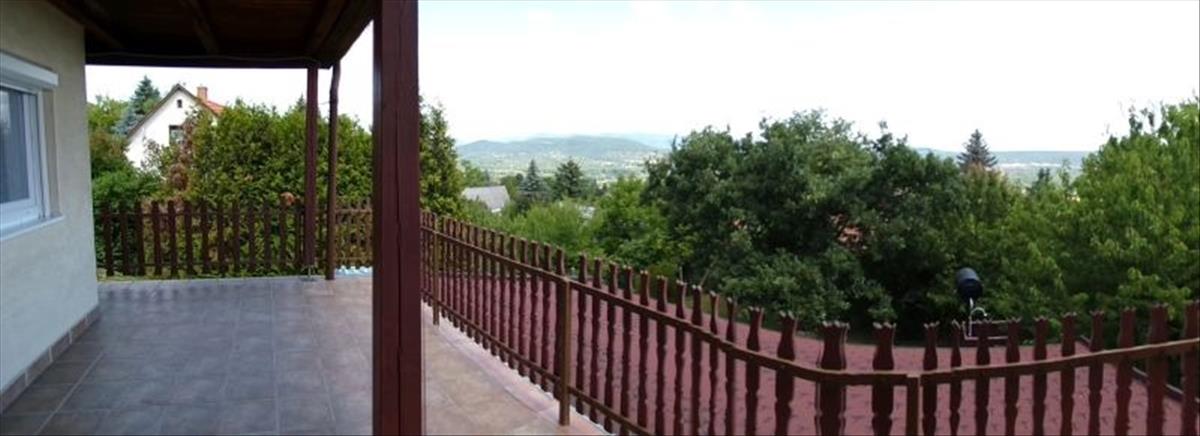 - Felső szint: két félszoba, fürdőszoba WC-vel, különleges panorámás fedett terasz (22 m²), mely a szobából és kívülről is megközelíthető.