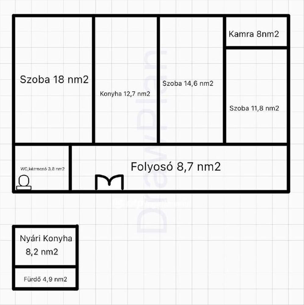 Az ingatlanba bevezetésre került a villany, ipari áram, gáz, víz. a konyhában nincs csaptelep, a vízvezeték a wc-ig lett kialakítva, onnan tovább vihető.