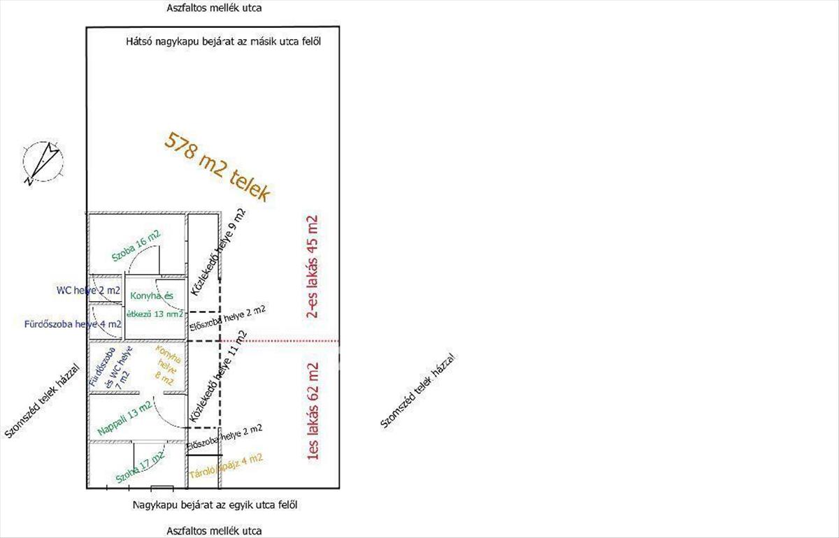 A telek 578 nm -es, melyből 50% beépíthető, így akár ennek az ingatlannak további 100 nm -el történő bővítése is(a Hész szerint) több lakásos lakóingatlannak vagy apartmanház kialakítására is alkalmas befektetés. Középtávon 5-10 alatt tervezhető profittal.