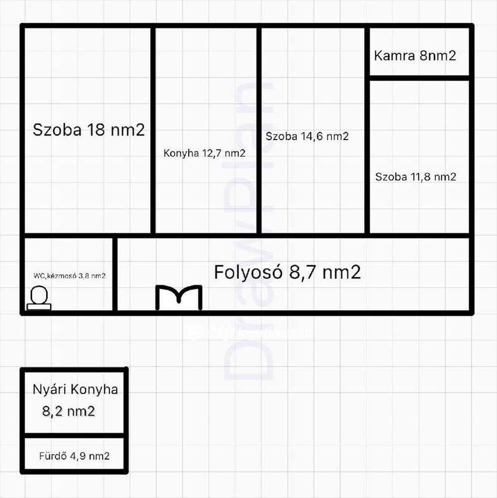 A telken a ház mellett nyárikonyha, gazdasági épületek, gyűrűs kút, pince, baromfiudvar található.