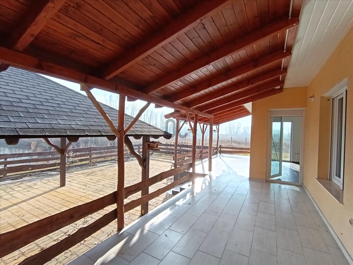 A ház tégla építésű, minden szoba tóra néző panorámás, hatalmas fedett terasszal, és közel 300 m2-es térkövezett területtel!